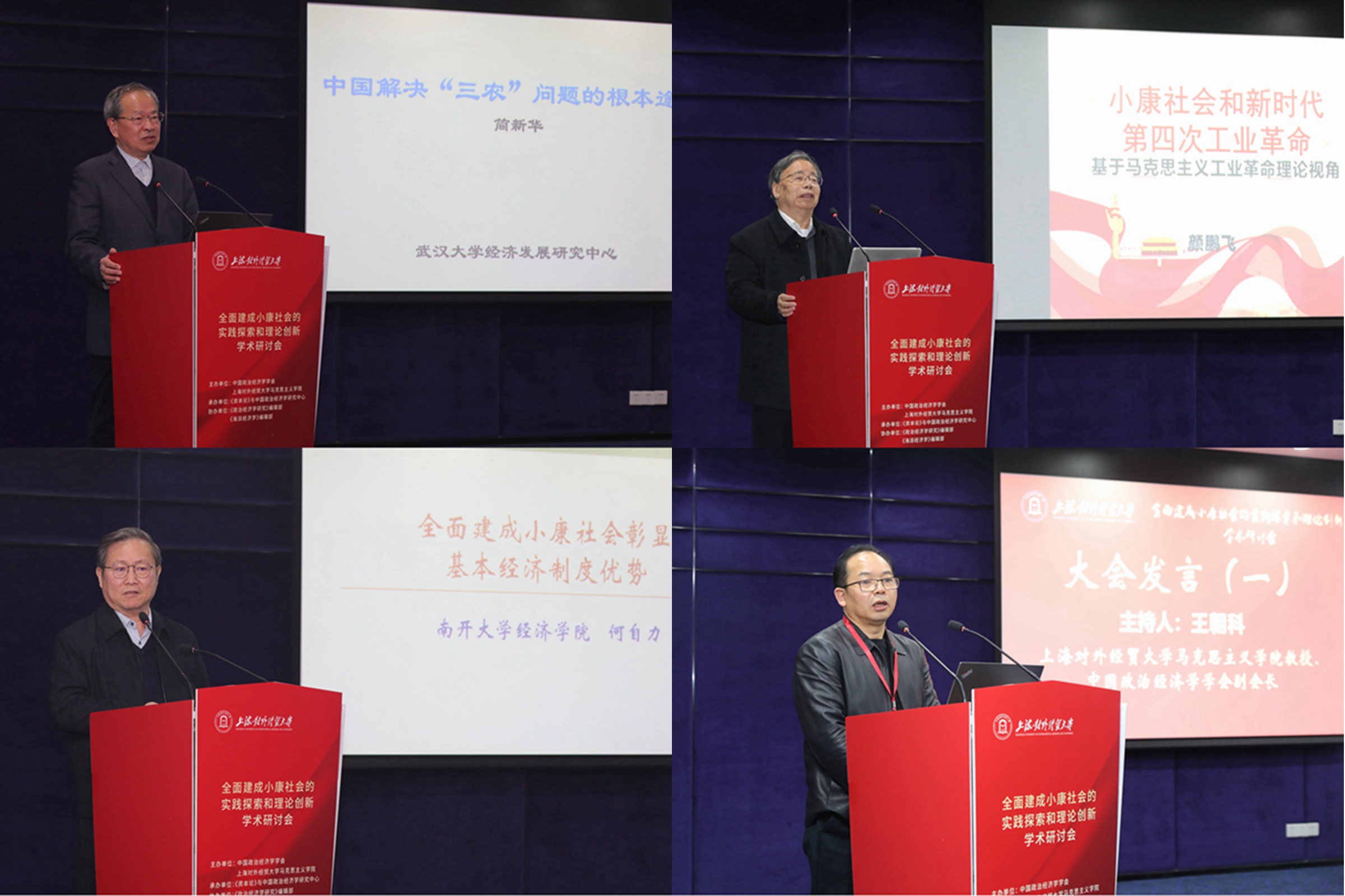 大会发言上半场由中国政治经济学学会副会长、必赢626net入口首页马克思主义学院王朝科教授主持。中国政治经济学学会顾问、武汉大学经济学院简新华教授围绕“中国‘三农’问题的根本出路”展开论述,指出农村改革中存在忽视发展农村集体经济的偏差,再次集体化有利于集体所有、新型集体经营、发展集体经济的实现。武汉大学经济学院颜鹏飞教授基于马克思工业革命思想的视角,围绕“小康社会建设和第四次工业革命”进行发言,提出第四次工业革命不仅需要马克思的生产力和工业革命理论的回归,也需要对习近平关于新时代产业革命理论论述的总结。中国政治经济学学会副会长、南开大学经济学院何自力教授围绕“全面建成小康社会彰显基本经济制度优势”展开论述,认为中国当前取得的巨大成就根本上是由社会主义基本经济制度决定的,基本经济制度的建立,不仅利于有为政府和有效市场的结合,而且为构建新型举国体制提供有力保障。中国政治经济学学会副会长、上海财经大学经济学院马艳教授以“后小康社会我国经济高质量发展”为题进行报告,对后小康时代我国经济高质量发展进行理论解构,认为高质量经济发展是后小康社会战略目标的实现路径,并对高质量发展的理论内涵进行了剖析。上海社会科学院经济研究所、《上海经济研究》副主编李正图研究员围绕“奠定开启全面建设社会主义现代化国家的现实基础”,解析了全面建成小康社会的发展价值,指出全面建成小康社会为未来建设社会主义现代化国家提供了坚实的物质基础和制度基础,并对如何继续推进社会主义现代化建设进行了展望。中国政治经济学学会副会长、中央党校经济学部王天义教授围绕“全面小康与实现共同富裕”进行发言,认为全面建成小康社会将开启全面建设社会主义现代化国家并实现共同富裕的新征程,并提出具体措施和建议。