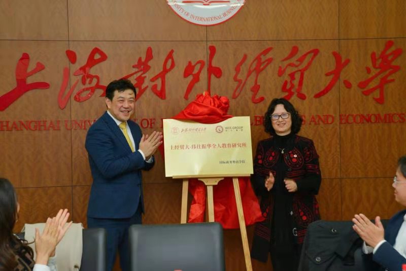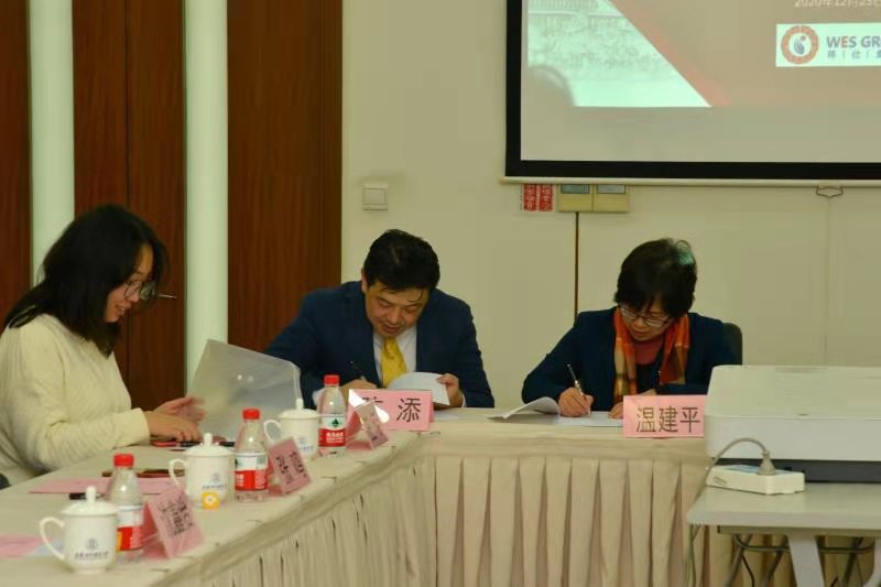 随后举行了揭牌仪式和捐赠签约仪式。陈洁和陈添为“上经贸大-玮仕振华全人教育研究所”揭牌。晏琼和陈添代表双方签署了《捐赠协议》,玮仕振华公益基金会此次向学校教育发展基金会捐赠人民币100万元,其中20万元用于支持学校校庆工作,80万元用于支持国际商务外语学院“上经贸大-玮仕振华全人教育研究所”的建设。温建平和陈添代表双方签署了《合作框架协议》。