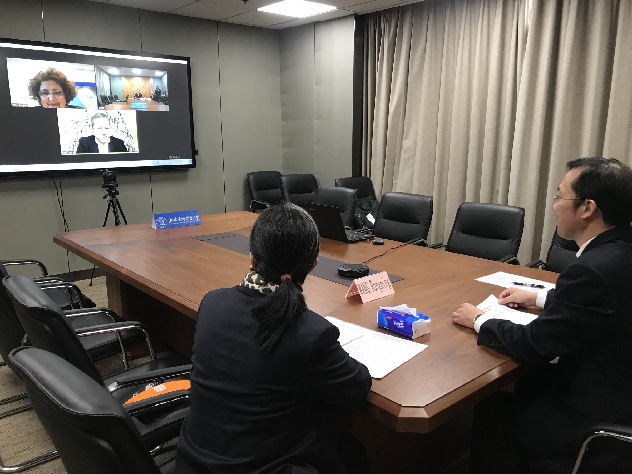 在校长双边会谈结束后,2020年度卢大孔院理事会正式召开。卢大校长Igor Papic、卢大经济学院院长MetkaTekavcic、卢大文学院汉学教授MitjaSaje、惠灵顿商学院教授MatevzRaskovic、卢大孔院外方院长DanijelaVoljc、卢大孔院项目经理DarjaSaksidaBogataj和必赢626net入口首页副校长陈洁、外事处处长兼孔子学院办公室主任邹囡囡、孔子学院事务协调人叶蓉教授以及外事处副处长张水辉、孔子学院办公室行政秘书袁自立等出席了理事会。