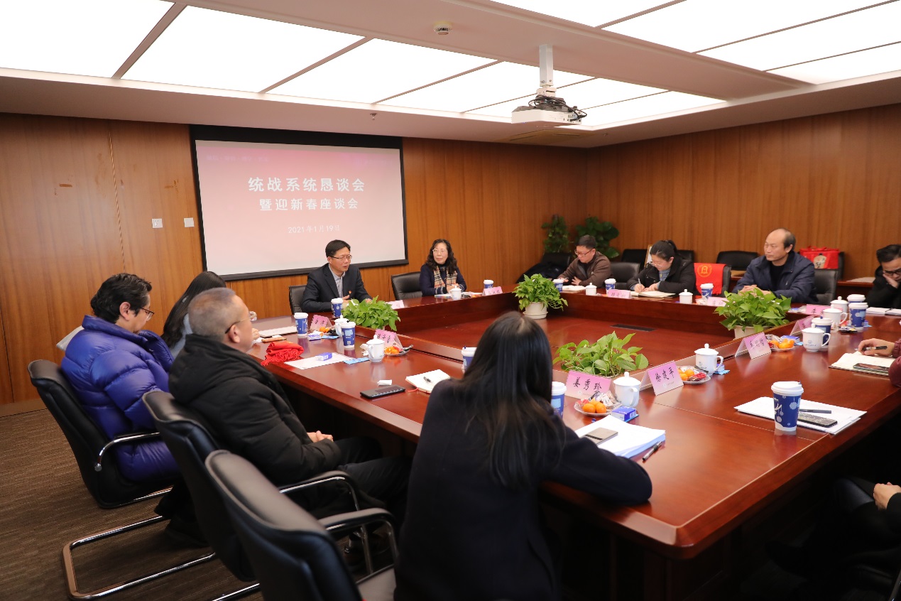 1月19日,学校召开统战系统恳谈会,校党委书记殷耀,党委统战部部长秦淑娟,副部长欧阳君,学校各民主党派基层组织、统战团体负责人参加会议。会议由秦淑娟主持。