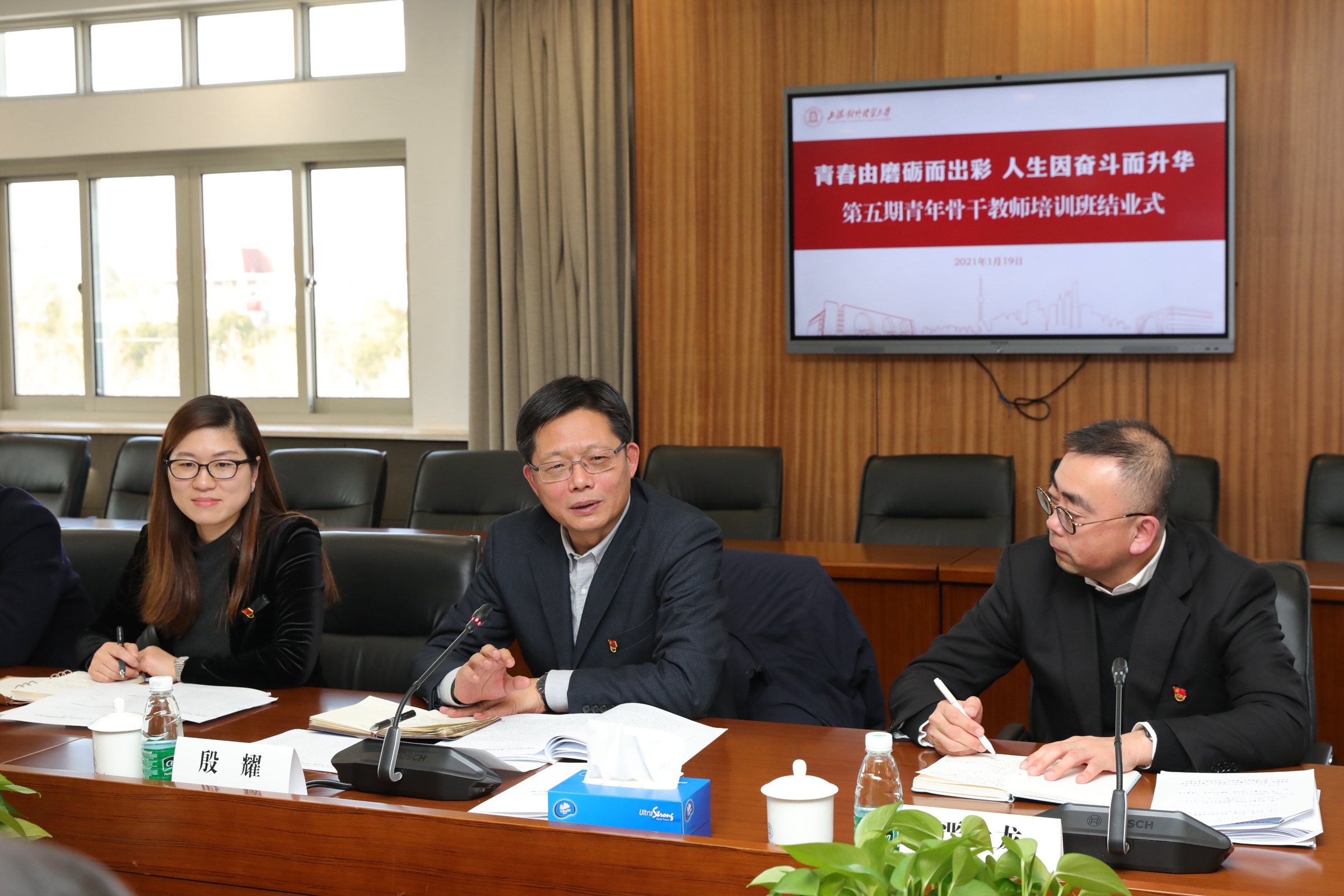 1月19日,学校第五期青年骨干教师培训班结业仪式在德政楼317会议室举行,校党委书记殷耀出席并作讲话,校党委组织部部长、党校常务副校长严大龙,校党委组织部副部长刘素贞,第五期青年骨干教师培训班全体学员与会。结业仪式由严大龙主持。