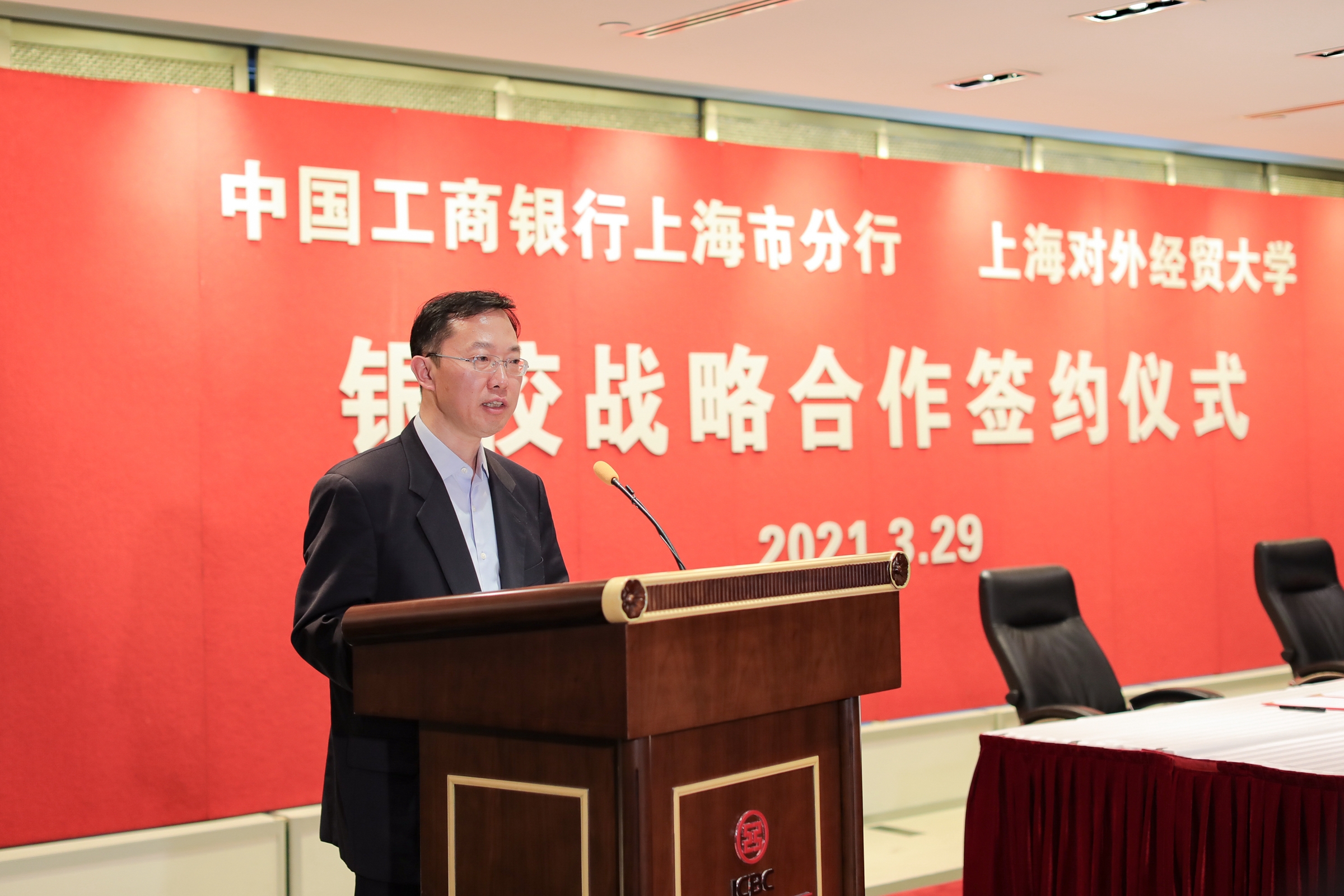 付捷在致辞中表示,学校深耕特色学科,放大发展格局,为我国现代化贸易体系构筑了人才基石,也为亚太地区乃至全球贸易领域提供了智力支撑。他提出,签订战略合作协议,将不断提升双方合作共建水平,工商银行将以金融创新服务教育创新,发挥全球资源、网络和科技优势,为学校国际化发展和高层次经贸人才培养提供金融助力。