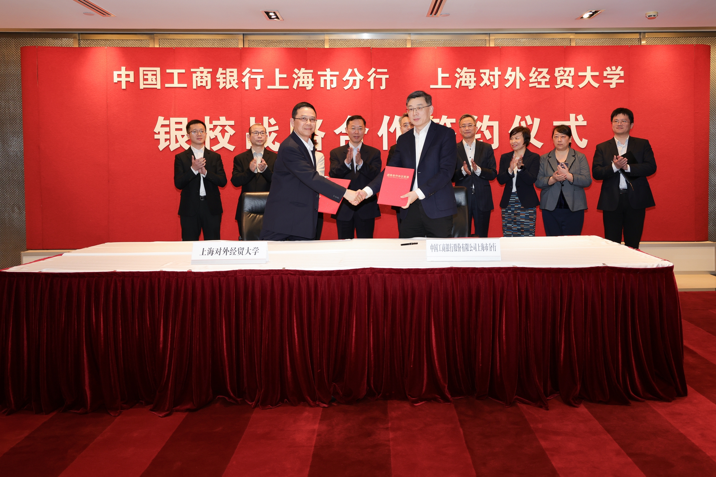 3月29日上午,必赢626net入口首页与中国工商银行上海市分行(以下简称“工行上海分行”)战略合作协议签约仪式在工行上海分行会议室举行。校长汪荣明、副校长徐永林以及相关部门负责人,工行上海分行党委书记、行长付捷,副行长张晓琪,相关部门以及松江支行负责人出席签约仪式。