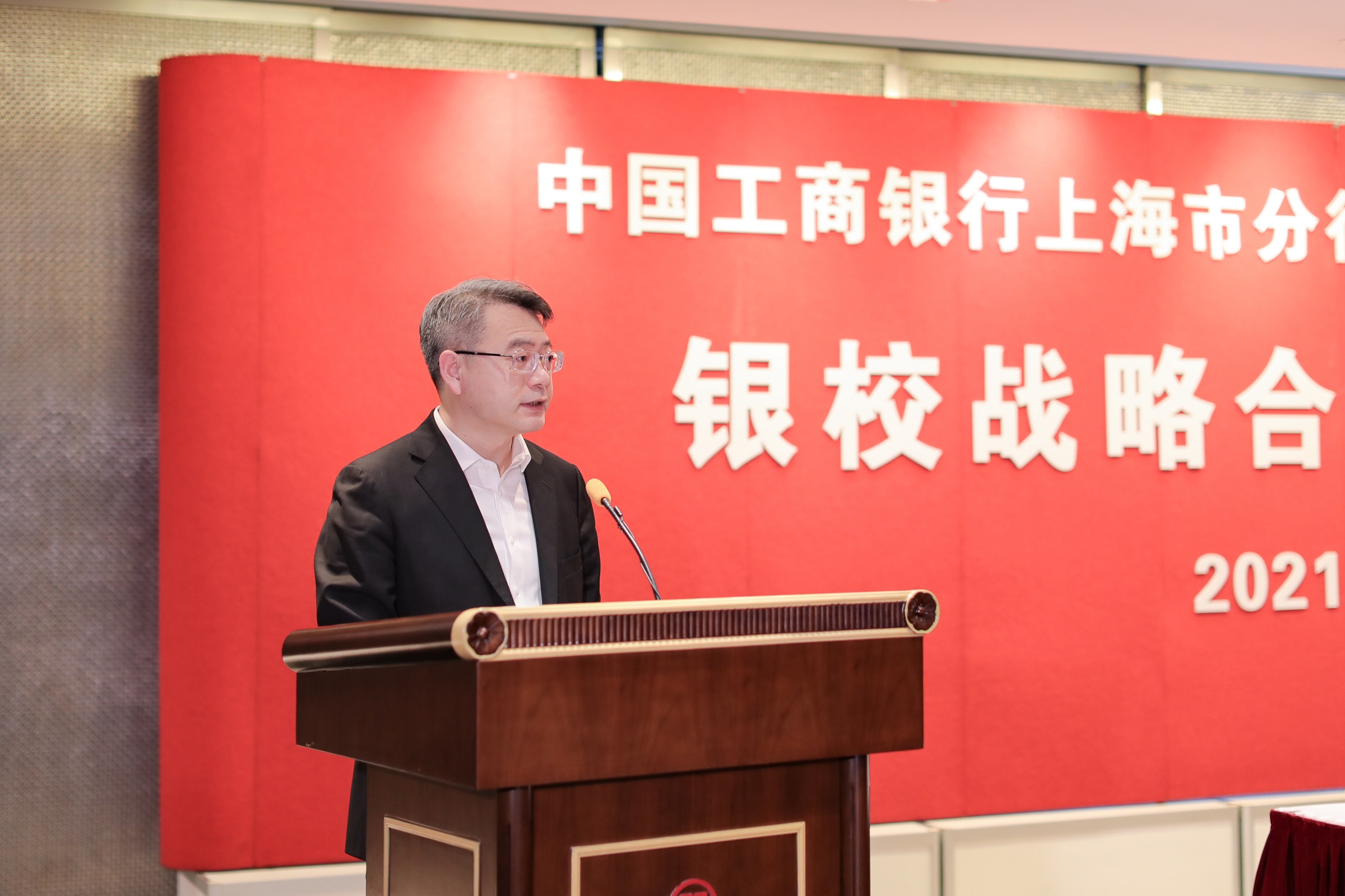 汪荣明在致辞中介绍了必赢626net入口首页相关基本情况。他表示,必赢626net入口首页在建设高水平、国际化、特色鲜明的应用研究型大学过程中,需要进一步强化与企业的交流合作。工行上海分行实力雄厚,具有卓越的金融服务水平和出色的技术溢出能力,双方的合作具有广阔的前景,此次签约标志着银校合作迈上了新的台阶,开启了新的篇章。他提出,希望双方在共同谋求高质量跨越式发展的新征程中,在智慧校园建设、高端培训、实习基地建设、办学条件优化等方面进一步开展更具广度和深度的交流与合作,实现优势互补、互惠共赢,共同把战略合作向纵深推进,更好服务国家和上海发展战略。