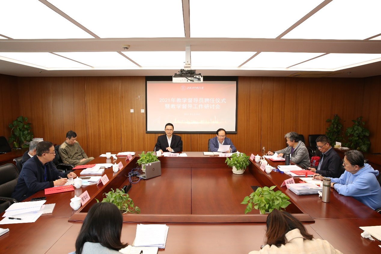 为深化本科教育教学质量监控,全面提升教学督导工作效能,学校于3月30日上午在松江校区德政楼417会议室召开2021年教学督导员聘任仪式暨教学督导工作研讨会,副校长徐永林、本科教学督导员、教务处相关工作人员参加会议。会议由教务处副处长(主持工作)朱建明主持。
