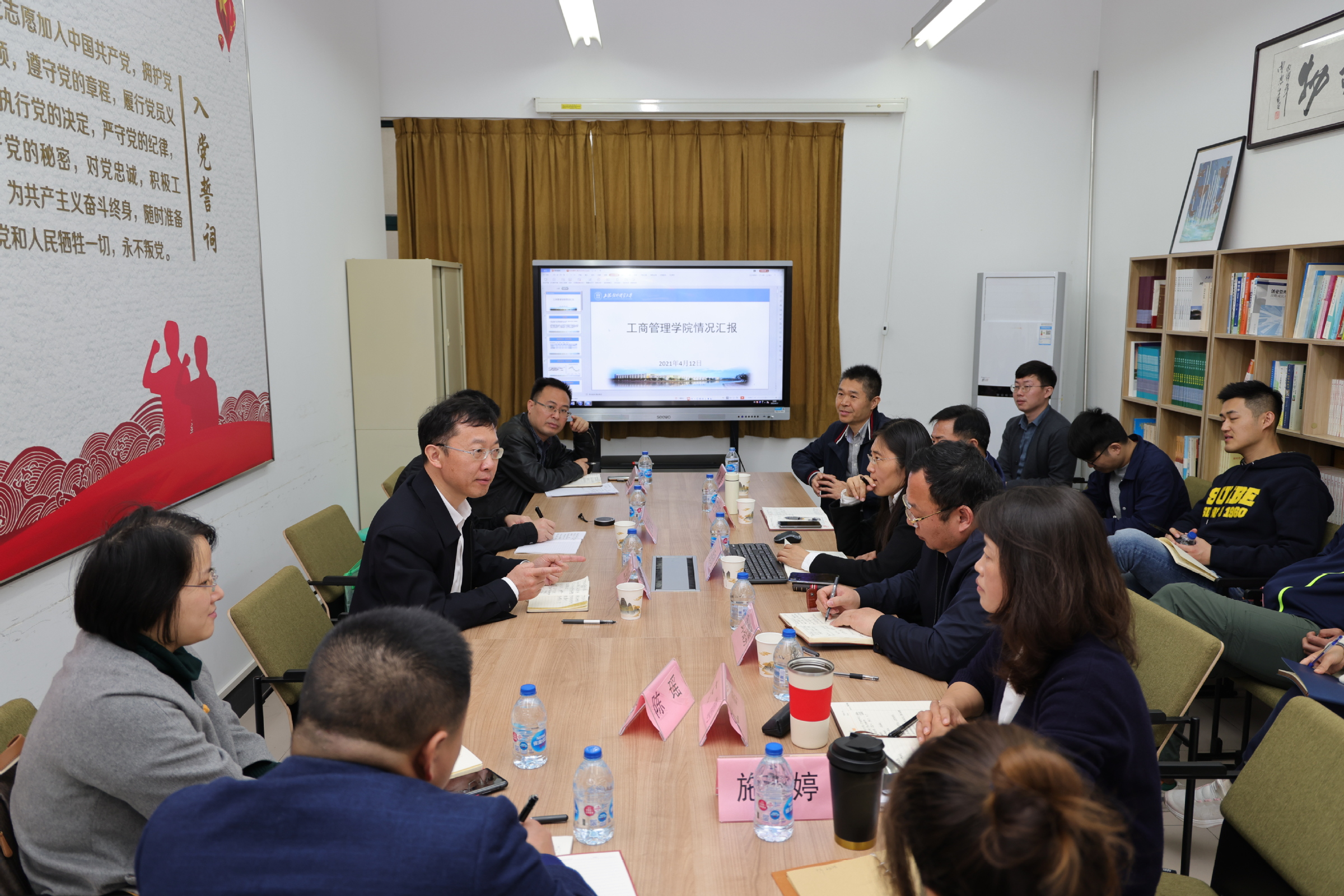 4月12日上午,校长汪荣明调研工商管理学院,学院领导班子成员、教师代表参加调研座谈会。