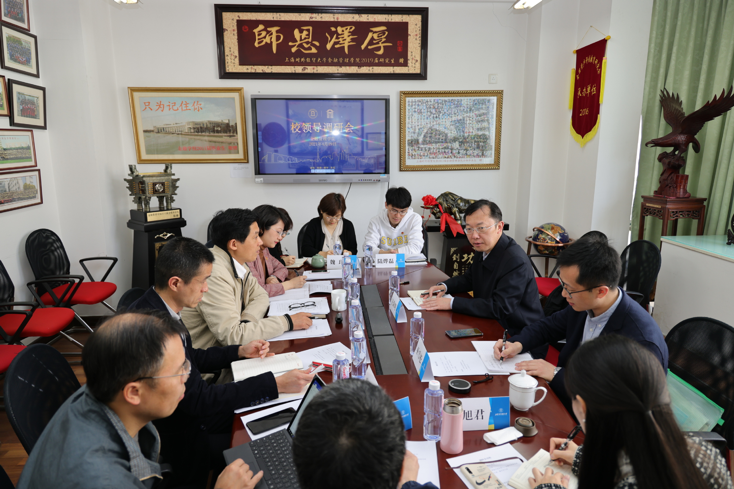 4月19日上午,校党委副书记、校长汪荣明调研金融管理学院,学院领导班子成员、教师代表参加调研座谈会。