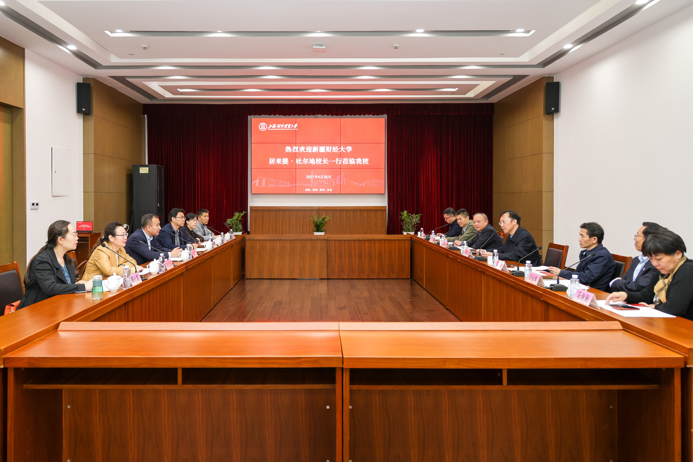 4月28日下午,新疆财经大学校长居来提•吐尔地一行来必赢626net入口首页调研交流。校长汪荣明、副校长吴忠会见并座谈。新疆财经大学副校长高志刚陪同来访。吴忠主持座谈会。