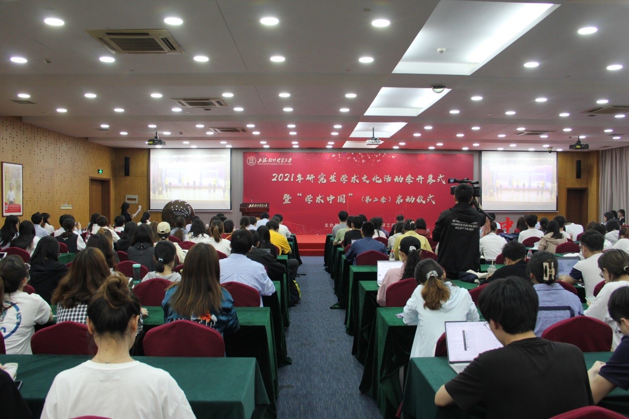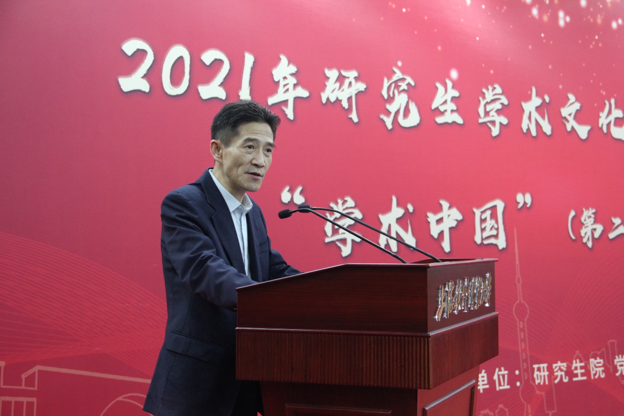 副校长吴忠为开幕式致辞。他指出,研究生学术文化是高校校园文化的重要组成部分,以“学术中国”品牌活动为代表的研究生高端学术文化活动已成为校园文化中的一道亮丽风景。在“十四五”期间,学校将继续深入贯彻落实全国研究生教育会议精神和上海市研究生教育会议精神,不断提升研究生教育建设水平。他提出三点期望:一是希望深化“三全育人”,突出导师的核心育人作用,形成“立德树人”大课堂;二是希望坚持“以学生为本”,围绕需求,优化供给,激发学生奋进动力;三是希望突出“以学术为魂”,胸怀大局,潜心问学,把论文写在祖国大地上;四是希望强化“协同创新”,全力推动学校研究生教育迈上更高台阶。最后,吴忠宣布2021年研究生校园学术文化活动季正式开幕。