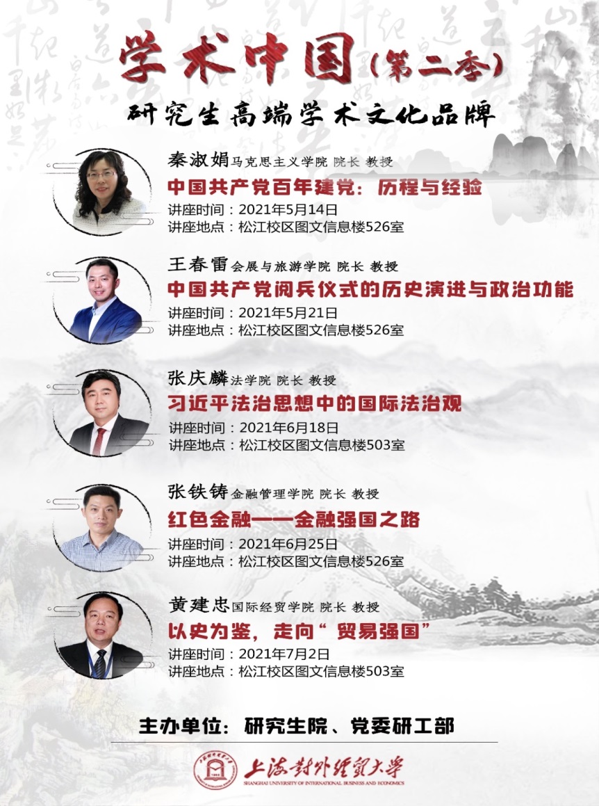 本季“学术中国”以党史学习教育为主线,将以跨学科视角,通过对党史、对学科发展史的解读,引导学生学史明理、学史增信、学史崇德、学史力行。