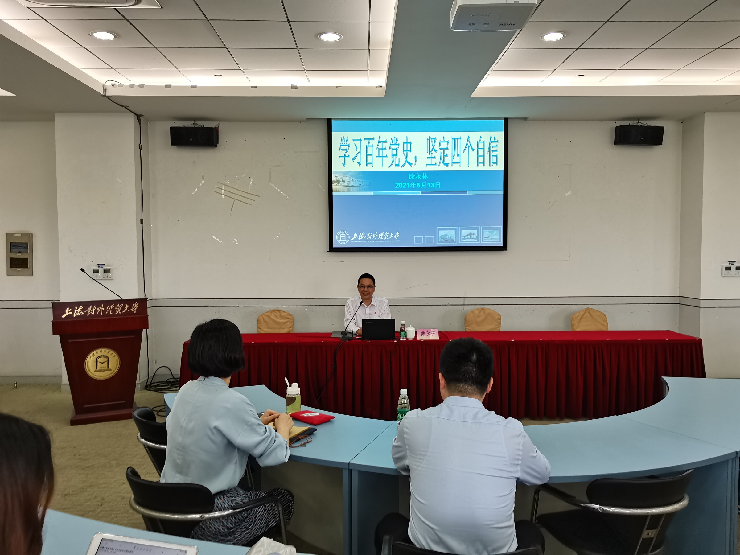 5月13日,副校长徐永林在信息楼530会议室为会展与旅游学院及会计学院学生党支部讲授党史学习教育专题党课“学习百年党史,坚定四个自信”。会展与旅游学院党总支书记谈华,副书记张丽,会计学院党委副书记张晴晴以及学生党支部全体党员参与了此次党课。