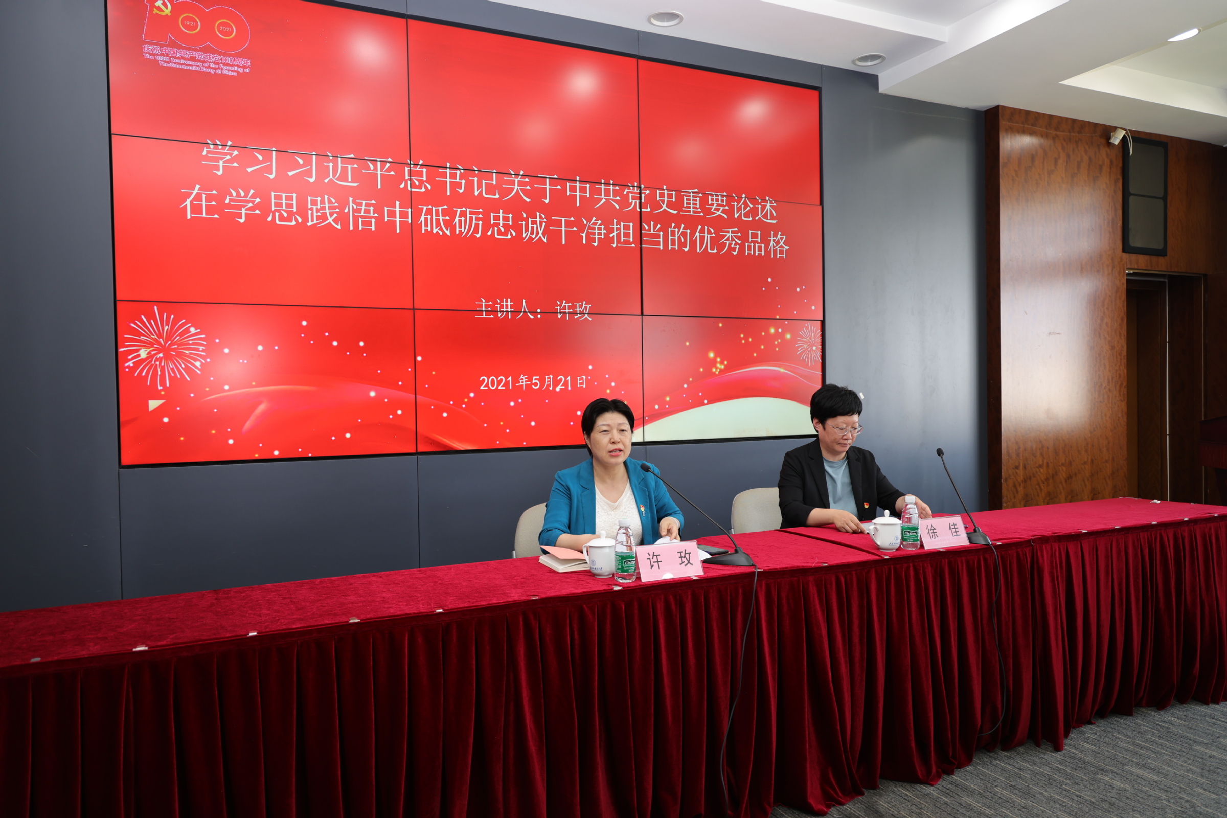 5月21日下午,校党委副书记、纪委书记、监察专员许玫围绕“加强党史学习教育,推进纪检监察工作高质量发展”主题,作了题为“学习习近平总书记关于中共党史重要论述,在学思践悟中砥砺忠诚干净担当的优秀品格”专题党课。学校全体专兼职纪检干部、各二级单位党组织书记、基层支部的纪检委员参加了本次党课学习。