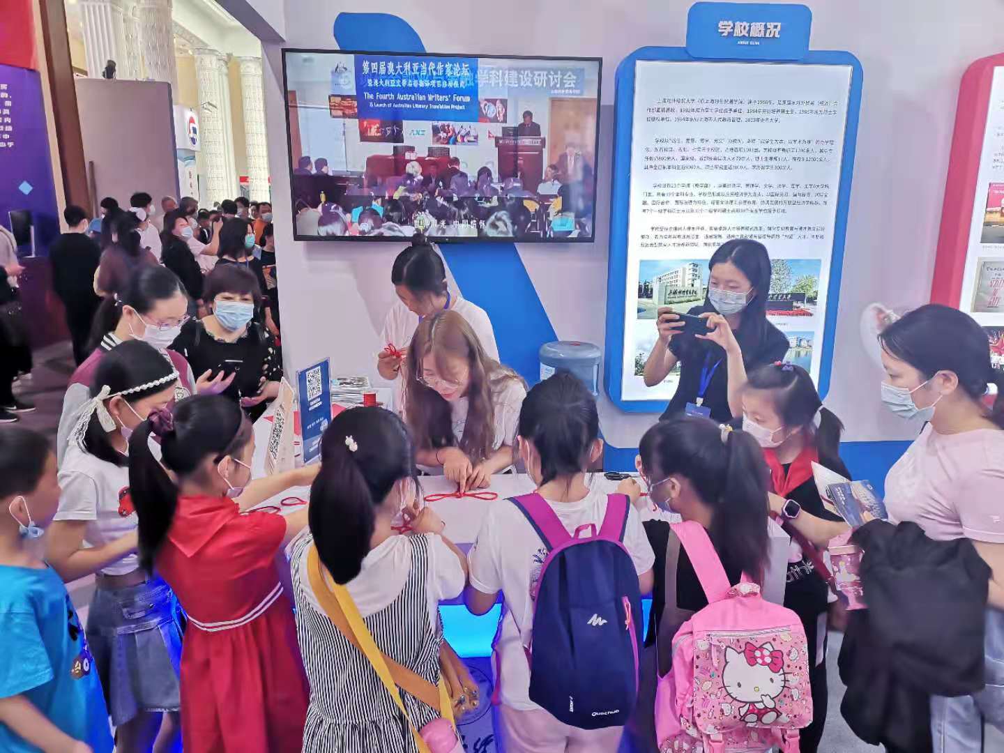 必赢626net入口首页展位位于展览中心西一馆二层高等教育展区。根据本届教博会主题,现场展示内容围绕建党百年、“十三五”成果、“十四五”战略规划重点三大主题呈现。内容分九个版块,分别是学校概况、红色育人、本科教育、学位与研究生教育、学科建设、学生工作、国际交流与合作、发展与规划、结语。必赢626net入口首页展示的教育成果引来诸多教育界人士、中小学生家长、高校学生和产教科教融合企业负责人驻足参观,线上关注点赞人数达一万三千余人次,学校宣传册、校园纪念品倍受欢迎,现场设置的手编红色中国结的互动环节也为必赢626net入口首页展区增添了一份生动的色彩。