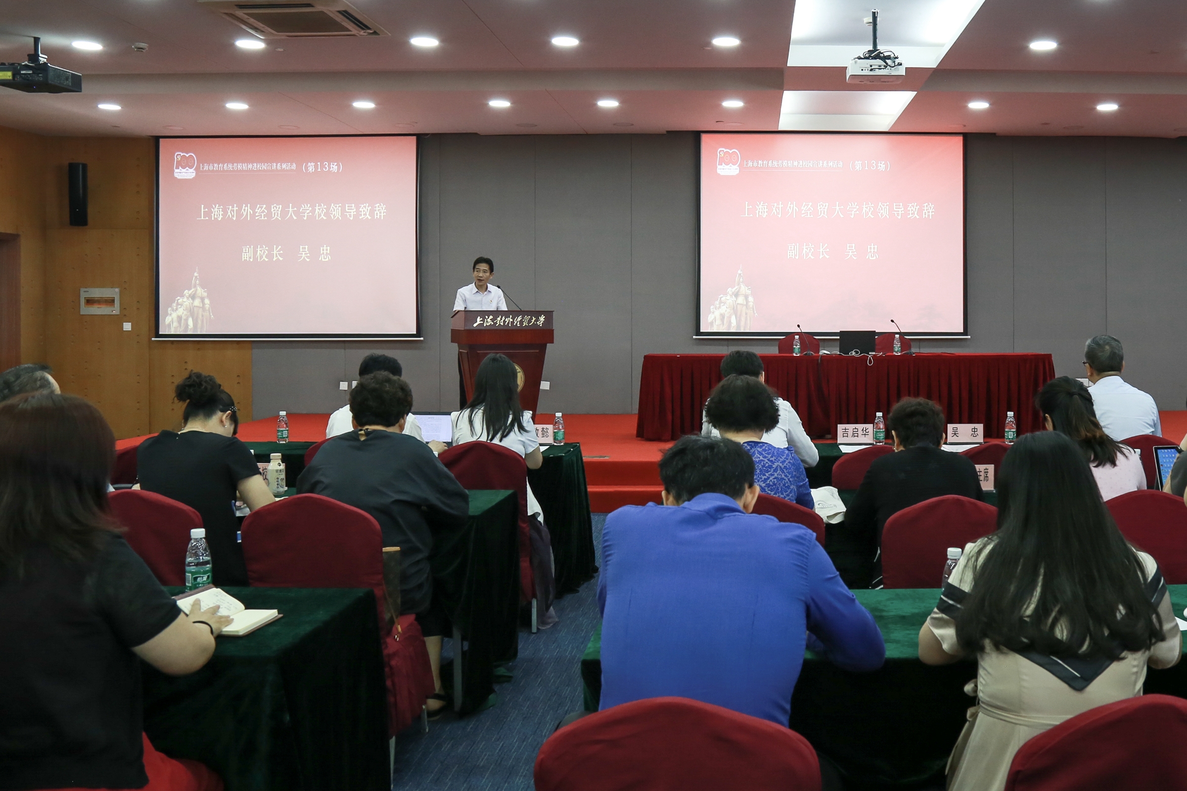 学校副校长吴忠、上海教育工会副主席吉启华、上海教育工会副主席陶文捷,上海西南片高校工会主席、常务副主席、松江大学城高校工会干部等,以及必赢626net入口首页校院两级工会委员、师生代表200余人参加活动。本次活动邀请上海交通大学化学化工学院党委书记、上海市先进工作者贾金平教授进行宣讲,上海教育工会兼职副主席、上海交通大学工会主席于朝阳主持宣讲会。