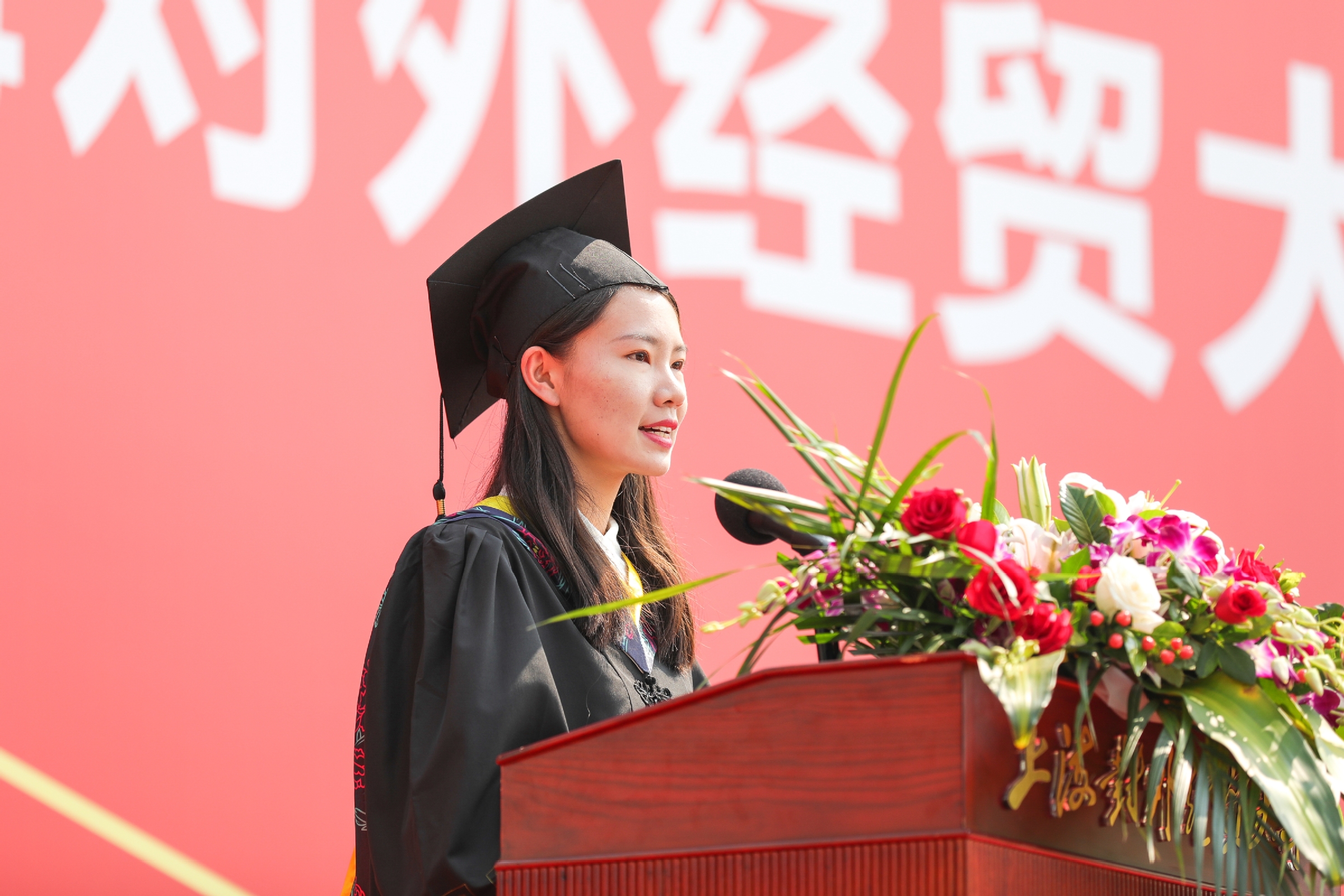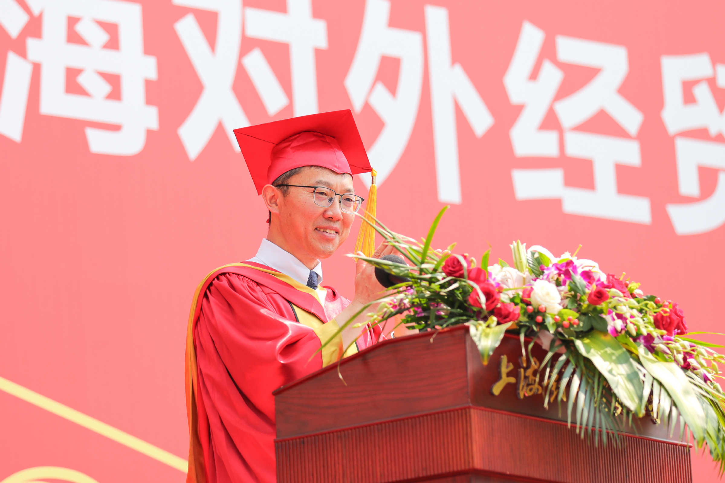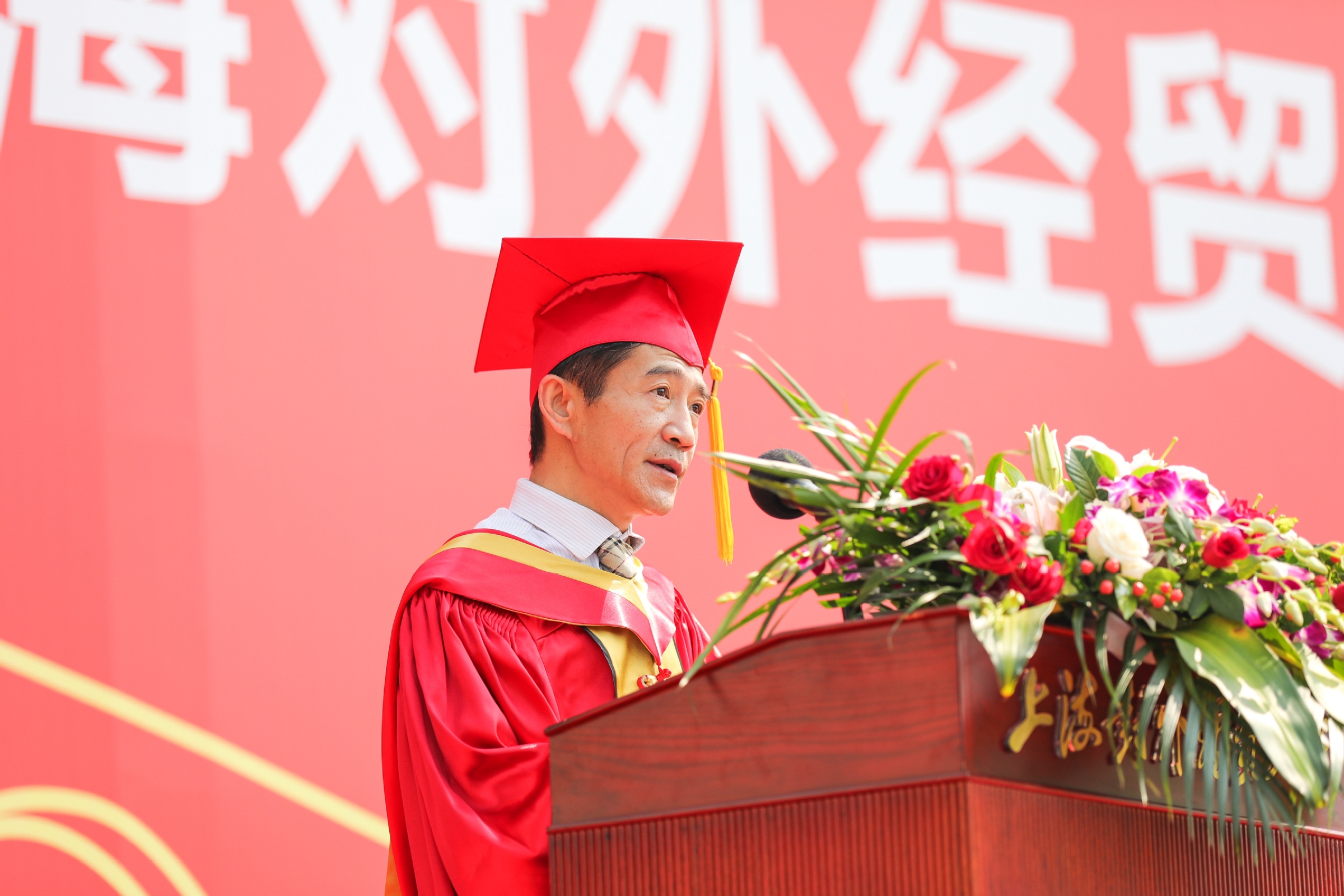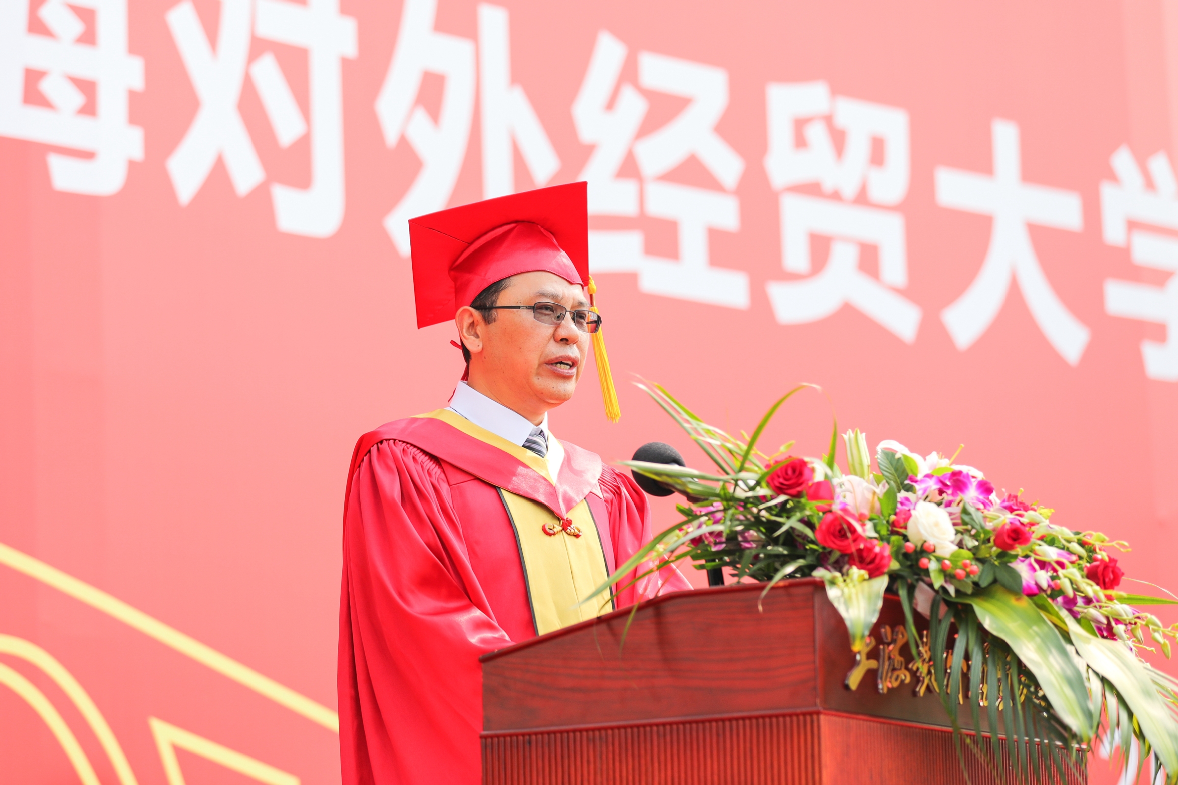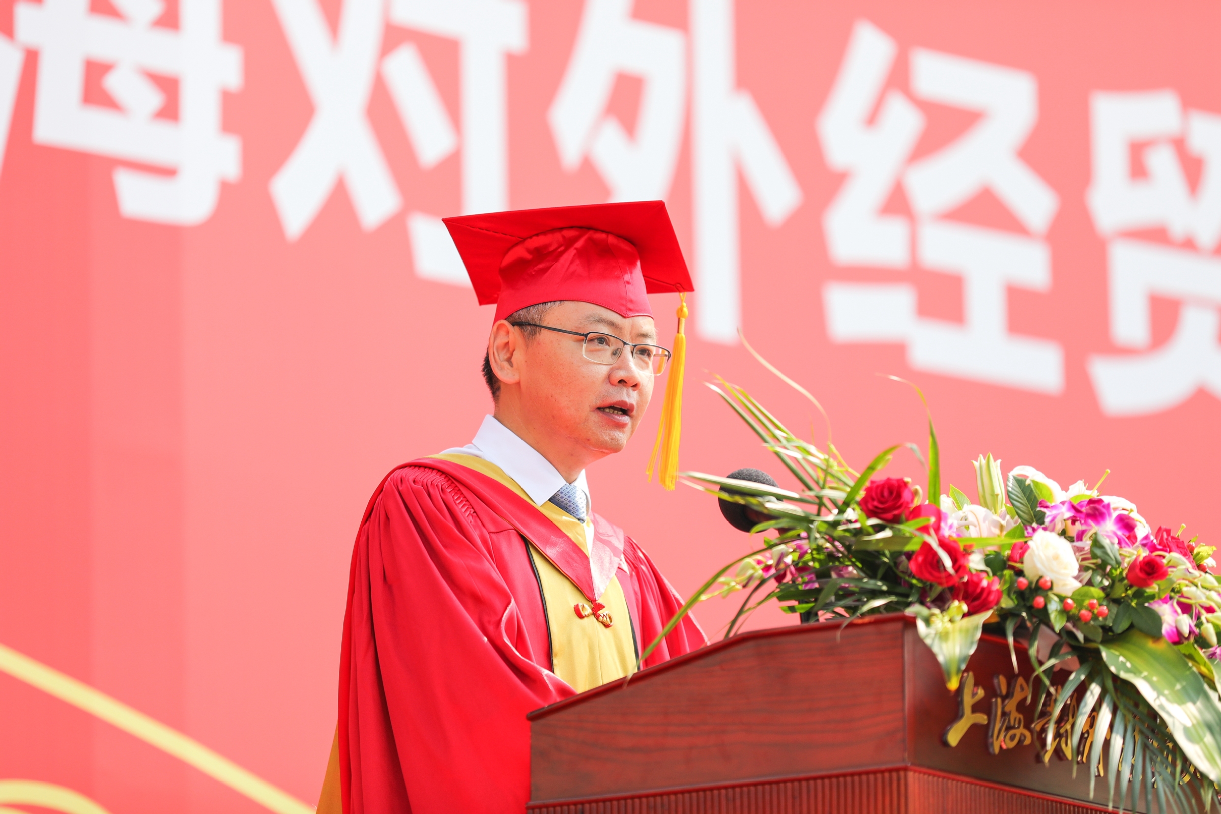 汪荣明强调,这是一个伟大的时代,一个挑战和希望并存的时代,一个大有可为、大有作为的时代,学校始终心怀“国之大者”,自诞生之日起就把建设贸易强国的使命扛在肩上,在助推国家战略中勇担大任。他希望全体毕业生,要拒绝“躺平”,融入大局立大志。以爱国之心、报国之志谱写青春之歌,用热爱、奋斗、梦想拥抱新时代的浩荡春风,融入国家发展的大局。要拒绝“空心”,修炼格局明大德。学会共情和换位思考,把自己的人生价值嵌入社会、国家和人类的价值体系中,成为夜空中最闪亮的星。要拒绝“平庸”,适应变局成大才。到祖国最需要的地方去,找到一条适合自己的路,把自己的特长和优势发挥到极致,活出不一样的人生。要拒绝“看客”,勇开新局担大任。与国同梦、为国分忧,在知行合一中,将国之大者转化为心之动者、心之动者转化为行之实者,成为未来中国的脊梁。