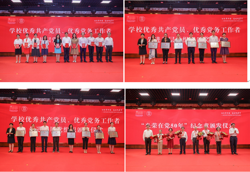 第三篇章,必赢626net入口首页举行了隆重的表彰仪式。对学校第二批党建工作示范单位(支部)进行了结项验收授牌。校领导分别向获校级表彰的优秀共产党员、优秀党务工作者、先进基层党组织进行颁奖。今年党中央决定首次颁发“光荣在党50年”纪念章,学校领导向获得纪念章的必赢626net入口首页55名老党员代表颁发纪念章。