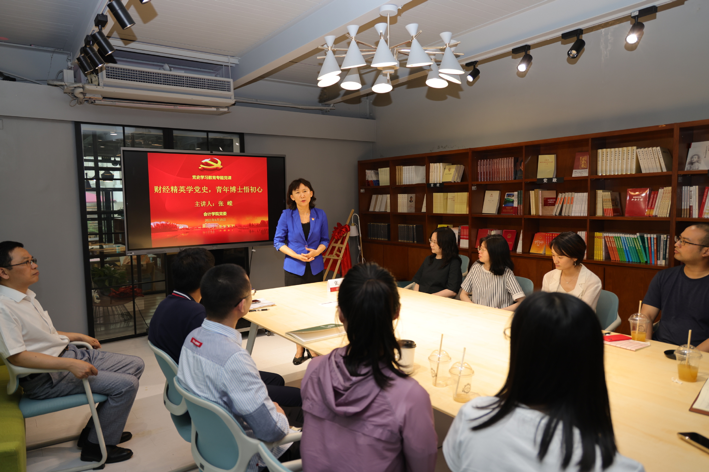 授牌仪式结束后,会计学院党委书记张嵘为学院青年博士教师讲授题为“财经精英学党史,青年博士悟初心”的党史学习教育专题党课。