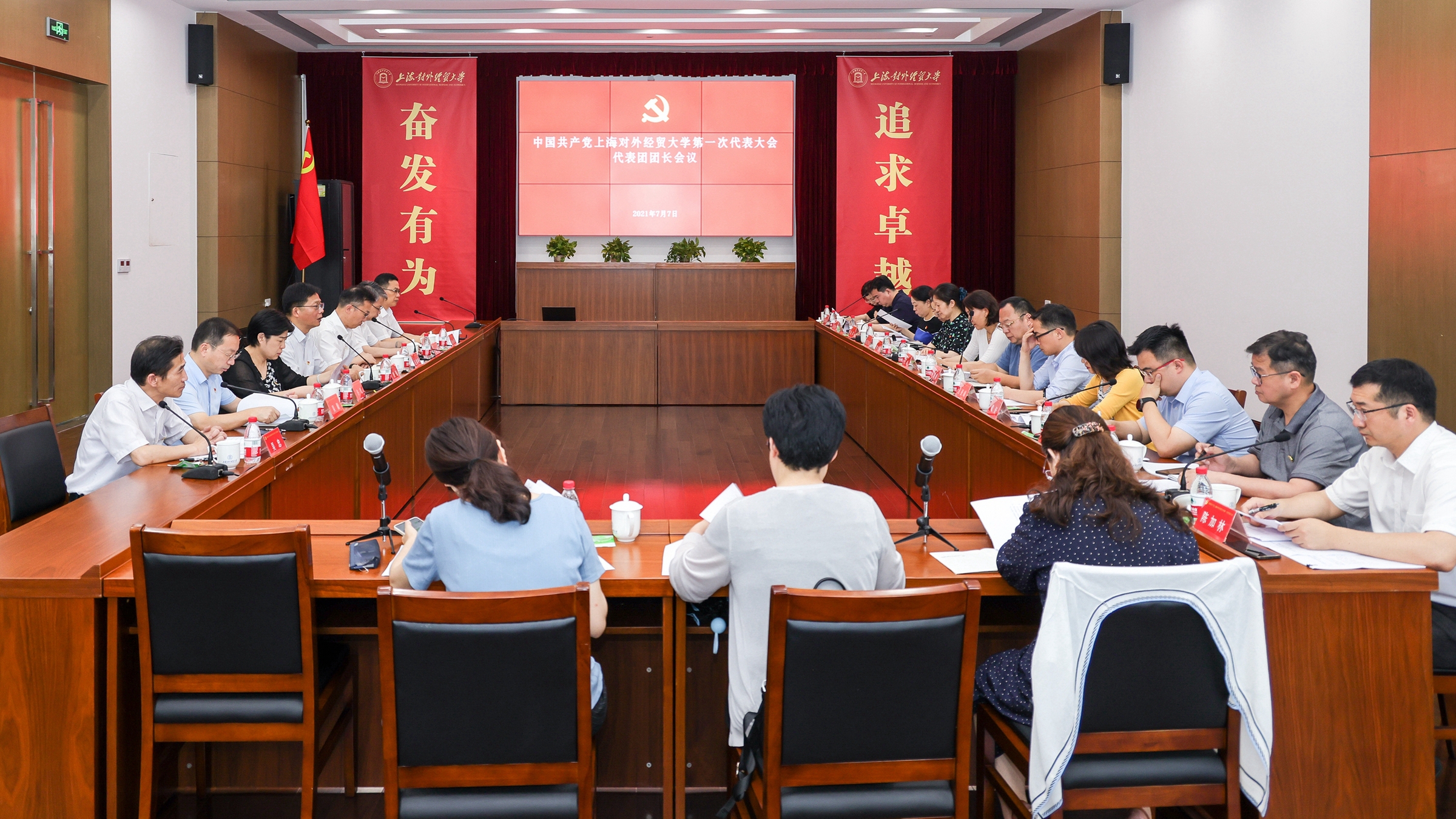 7月7日下午,学校在古北校区综合楼510会议室召开中国共产党必赢626net入口首页第一次代表大会代表团团长会议,校党委常委、各代表团团长出席会议。会议由校党委书记殷耀主持。