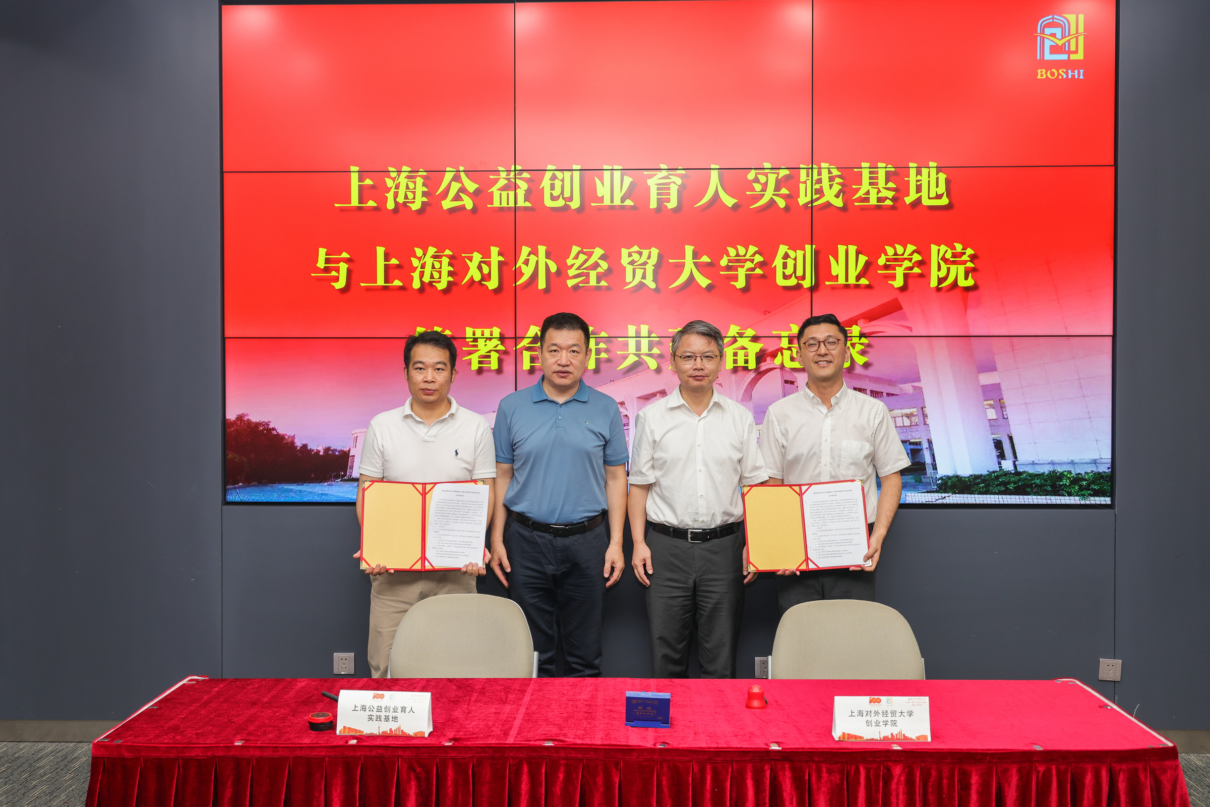 创业学院副院长高伟与郭艳刚签署合作共建备忘录。