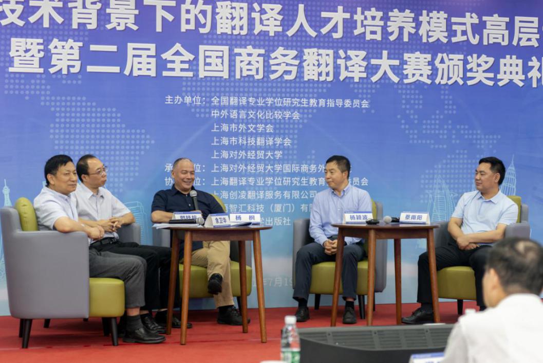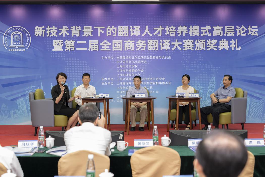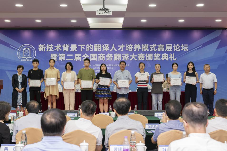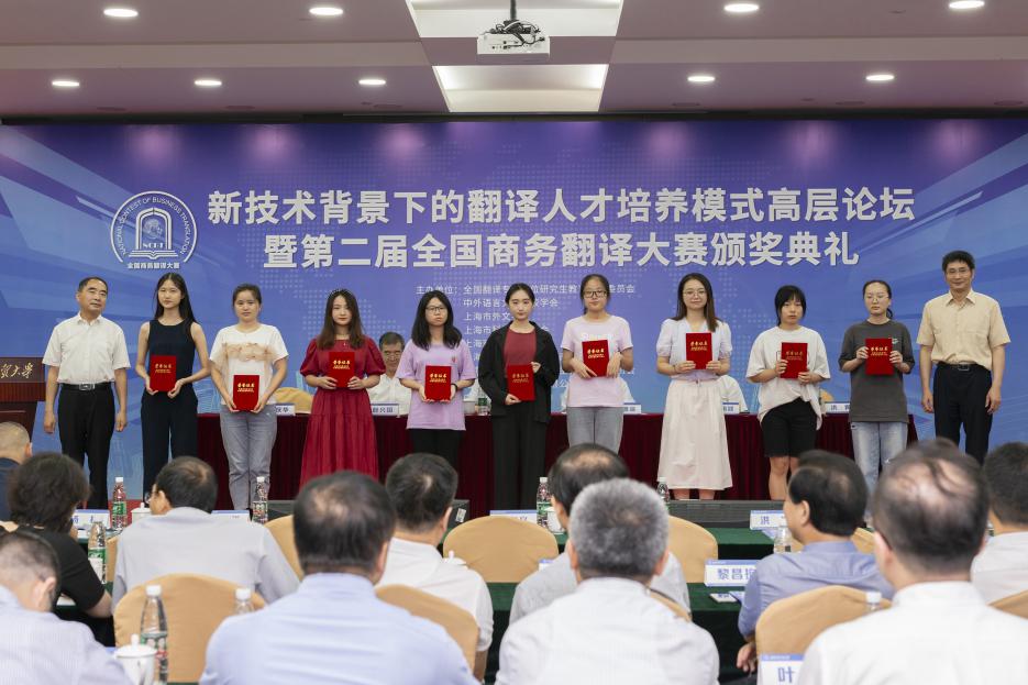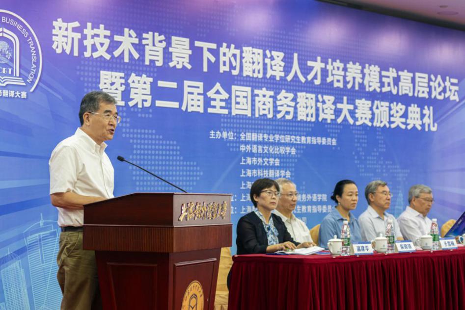 7月19日,“新技术背景下的翻译人才培养模式高层论坛暨第二届全国商务翻译大赛颁奖典礼”在必赢626net入口首页松江校区信息楼526会议室成功举办。本次论坛由全国翻译专业学位研究生教育指导委员会、中外语言文化比较学会、上海市外文学会、上海市科技翻译学会和必赢626net入口首页共同主办,上海翻译专业学位研究生教育指导委员会、上海创凌翻译服务有限公司、中语智汇科技(厦门)有限公司、上海交通大学出版社协办,必赢626net入口首页国际商务外语学院承办,试译宝提供技术支持。必赢626net入口首页副校长于雪梅、全国翻译专业学位研究生教育指导委员会主任委员黄友义、中外语言文化比较学会副会长叶兴国出席典礼并致辞。资深翻译家、澳大利亚文学研究专家、必赢626net入口首页教授黄源深,上海翻译专业学位研究生教育指导委员会委员、上海外国语大学教授柴明颎,全国外国语言文学类专业教学指导委员会副主任委员、上海外国语大学教授冯庆华等20余名翻译界专家学者,语言服务行业代表,国际商务外语学院领导班子成员,以及全国各地的获奖学校师生代表,学校相关专业教师和研究生100余人参加典礼。开幕式由国际商务外语学院院长温建平主持。