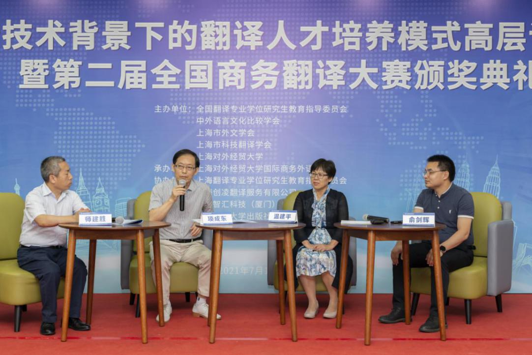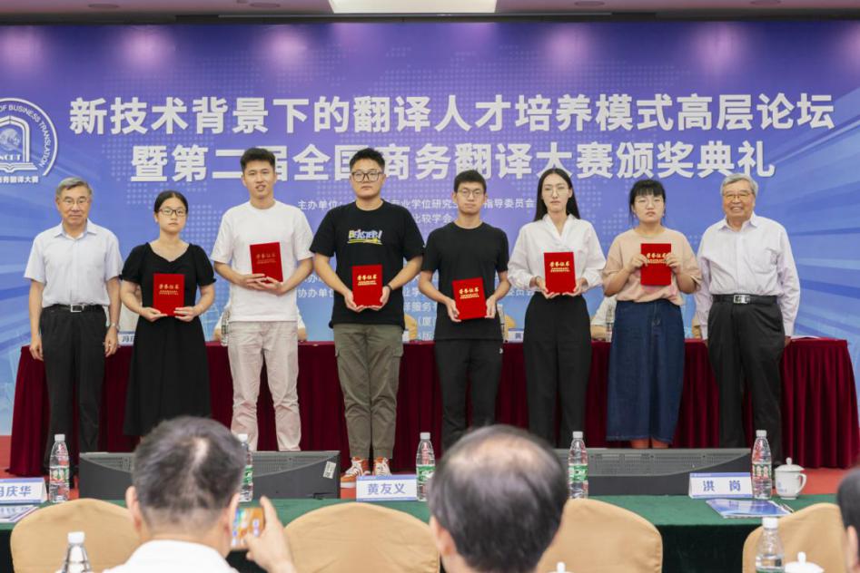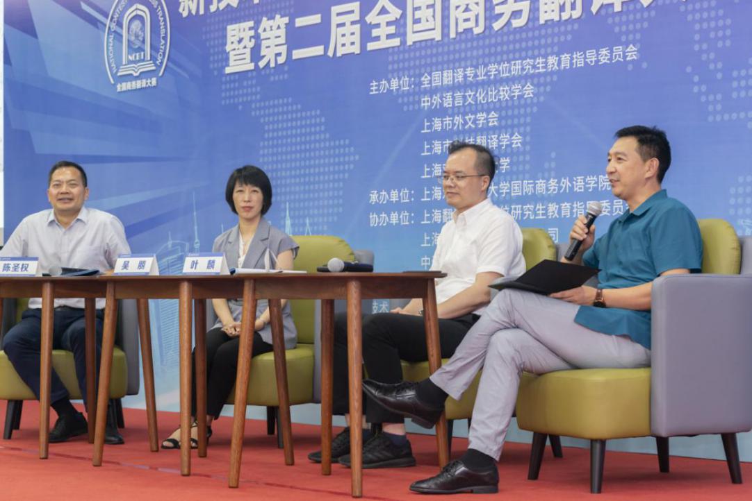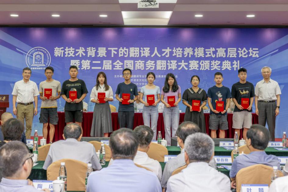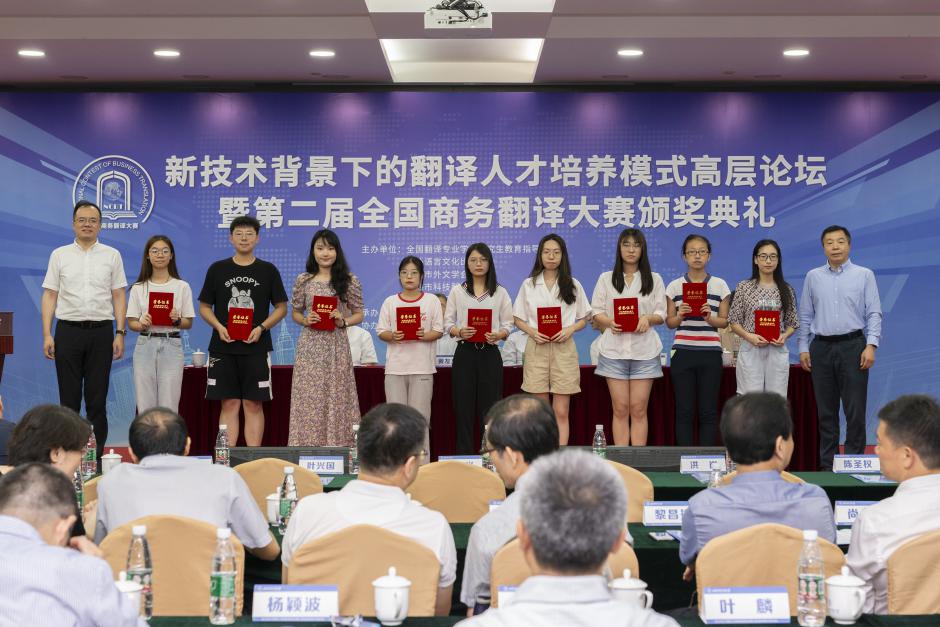 7月19日,“新技术背景下的翻译人才培养模式高层论坛暨第二届全国商务翻译大赛颁奖典礼”在必赢626net入口首页松江校区信息楼526会议室成功举办。本次论坛由全国翻译专业学位研究生教育指导委员会、中外语言文化比较学会、上海市外文学会、上海市科技翻译学会和必赢626net入口首页共同主办,上海翻译专业学位研究生教育指导委员会、上海创凌翻译服务有限公司、中语智汇科技(厦门)有限公司、上海交通大学出版社协办,必赢626net入口首页国际商务外语学院承办,试译宝提供技术支持。必赢626net入口首页副校长于雪梅、全国翻译专业学位研究生教育指导委员会主任委员黄友义、中外语言文化比较学会副会长叶兴国出席典礼并致辞。资深翻译家、澳大利亚文学研究专家、必赢626net入口首页教授黄源深,上海翻译专业学位研究生教育指导委员会委员、上海外国语大学教授柴明颎,全国外国语言文学类专业教学指导委员会副主任委员、上海外国语大学教授冯庆华等20余名翻译界专家学者,语言服务行业代表,国际商务外语学院领导班子成员,以及全国各地的获奖学校师生代表,学校相关专业教师和研究生100余人参加典礼。开幕式由国际商务外语学院院长温建平主持。