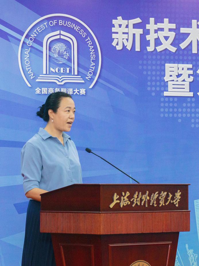 于雪梅代表学校向大会致辞。她首先向出席典礼的各位专家学者表示诚挚欢迎,向获奖选手表示祝贺,并重点介绍了学校的深厚历史底蕴和文化传统,外语学科发展的优势和特色,以及学校在商务翻译领域的卓越人才和突出贡献。她指出,在全球化和世界交流发展的新时代,翻译工作者们肩负着比以往任何时期更崇高的使命和责任,不仅要向中国翻译世界,更要向世界翻译中国。因此,需要充分发挥高校服务社会的功能,将翻译学科建设与学校特色紧密结合起来,将学科建设成果落实到人才培养上来,积极应对新技术带来的新挑战,促进翻译学科的多元、特色发展,为国家的对外开放培养更多的优秀翻译人才。