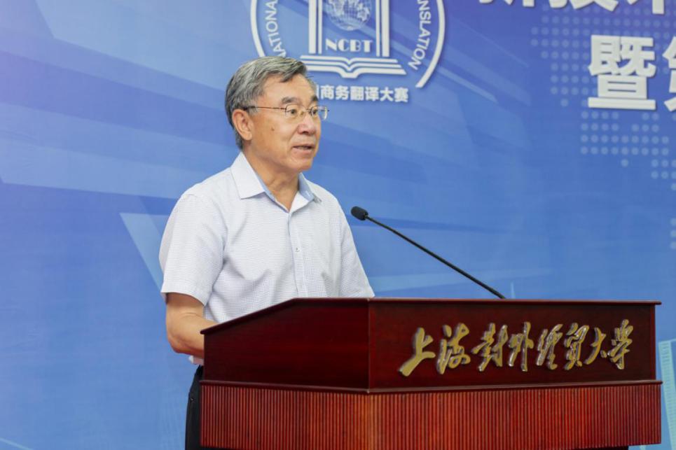 黄友义在致辞中肯定了国际商务外语学院在赛事组织、会务服务、论坛筹备等方面的辛勤付出与显著成效。他指出,商务翻译所涉及的决不仅是经济贸易,还涉及政治、法律法规、国际关系、国际市场竞争,国际话语权多个领域,商务交流涉及讲好中国故事,介绍中国产品、传播中国技术、推广中国创新、实行中国标准等,因此商务翻译大赛的举办非常具有实际意义和辐射作用,希望能继续办下去。针对新技术背景下的翻译人才培养,他提出三点思考:一是翻译专业教育要服务“双循环”;二是翻译教育要培养堪当历史重任的时代新人;三是翻译教育要主动适应新技术革命与教育教学改革。最后,黄友义强调指出,新时代呼唤高质量的翻译教育,也给翻译研究、翻译教育和翻译实践提供了空前的发展机会。我们需要深刻认识历史提供的机遇,抓住机会,挑起自己的历史担当。