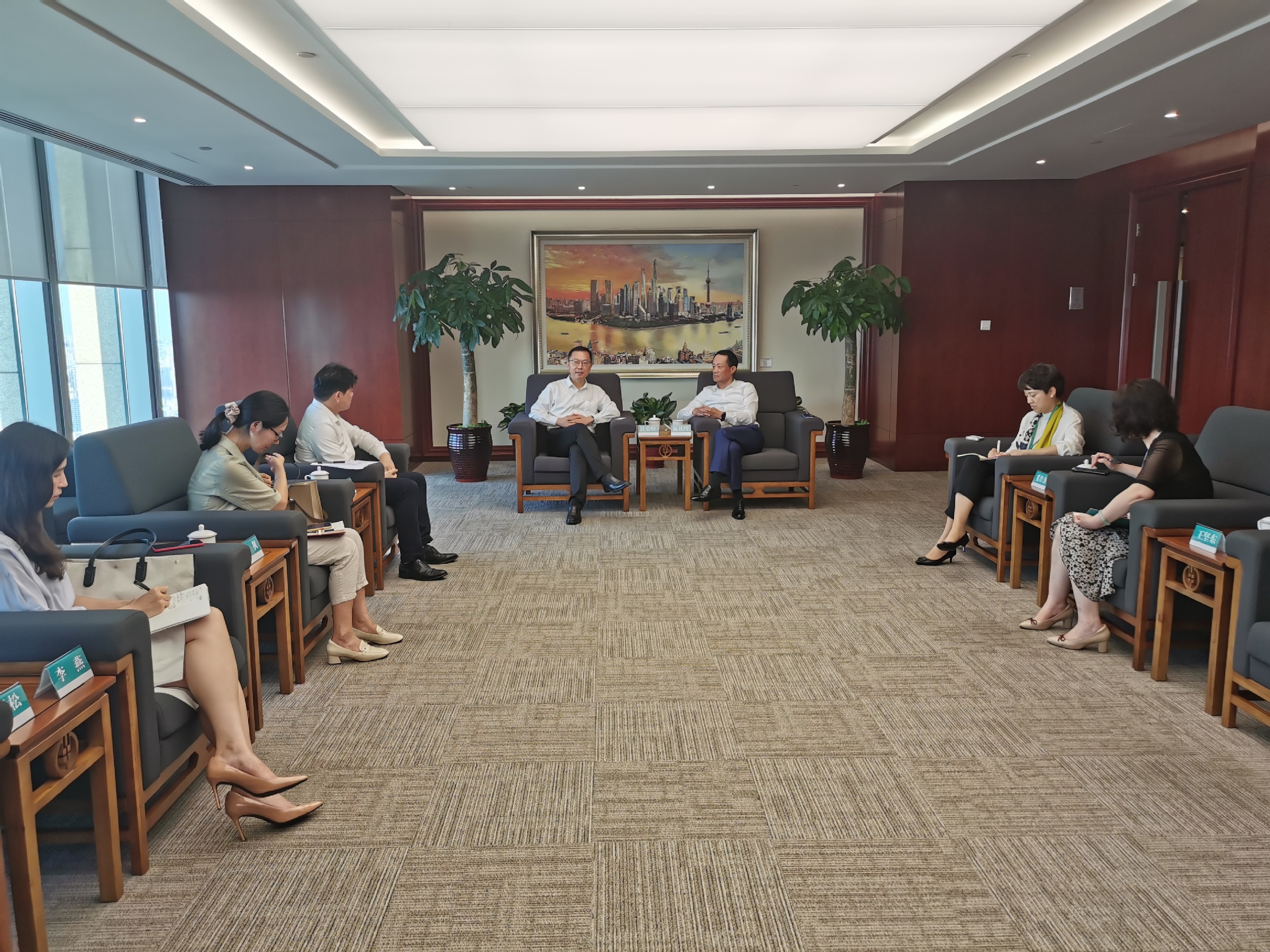 陈其昌对于汪校长一行来访表示热烈欢迎,他介绍了银行的发展现状、特色亮点,以及同业公会的相关情况,重点回顾了与上海多所高校长期合作的情况。他希望双方聚焦优势领域,寻找合作增长点,加强沟通交流,做好开局起步。