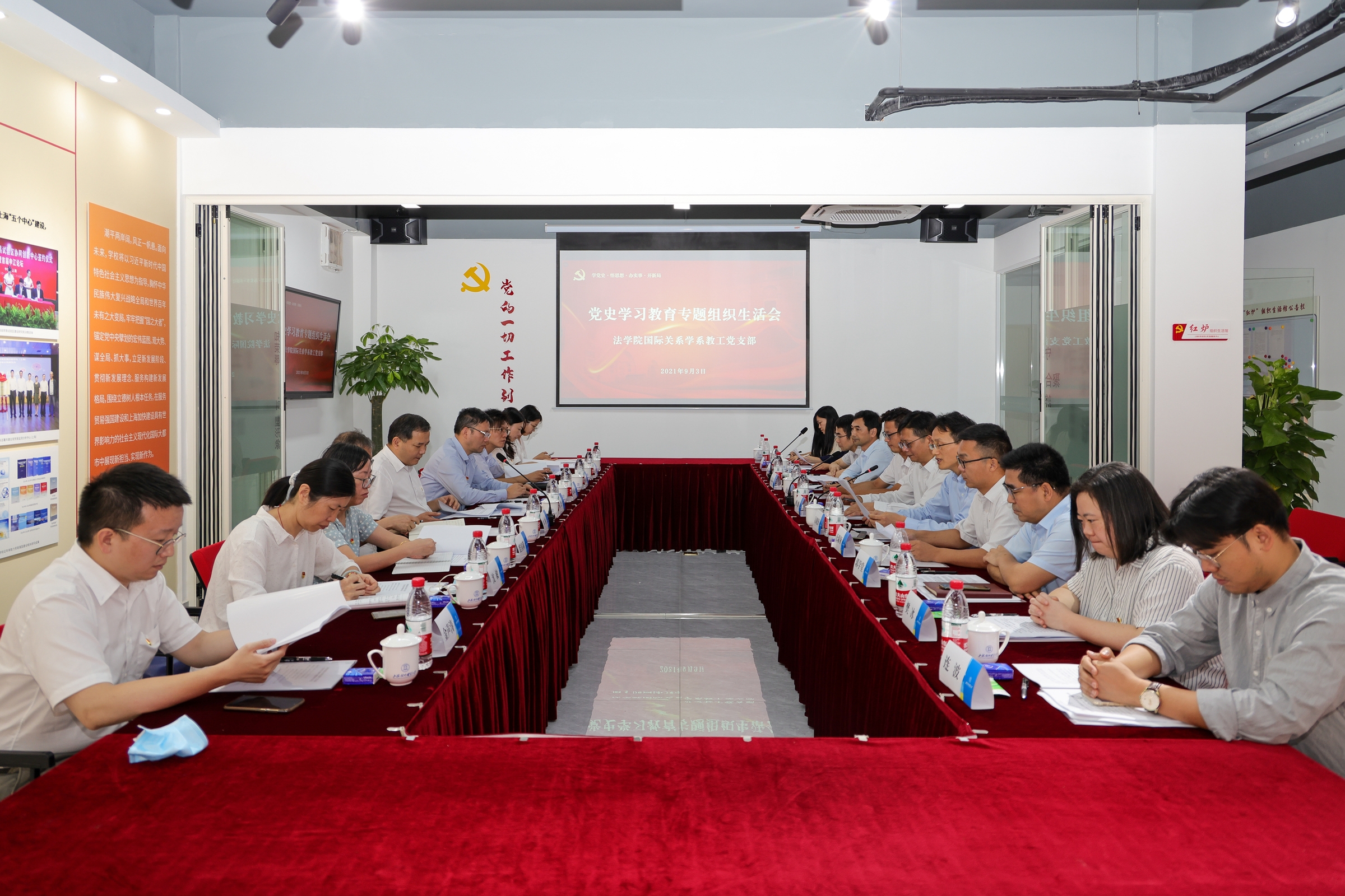 座谈会后,指导组一行旁听了学校法学院国际关系学系教工党支部党史学习教育专题组织生活会。会上,支部书记吴晓锋汇报了支部开展党史学习教育情况,通报了党支部委员会检视问题情况。党员逐一发言,开展批评与自我批评。最后,殷耀代表学校党委作点评。殷耀表示,本次专题组织生活会支部党员同志会前准备充分、动作规范到位、整改务求实效。他对支部开展好下一阶段党史学习教育提出三点希望:一是学深悟透,立足支部特色,抓好党史学习教育;二是学以致用,发挥支部优势,办好实事服务师生;三是示范引领,发挥样板作用,推动事业创新发展。
