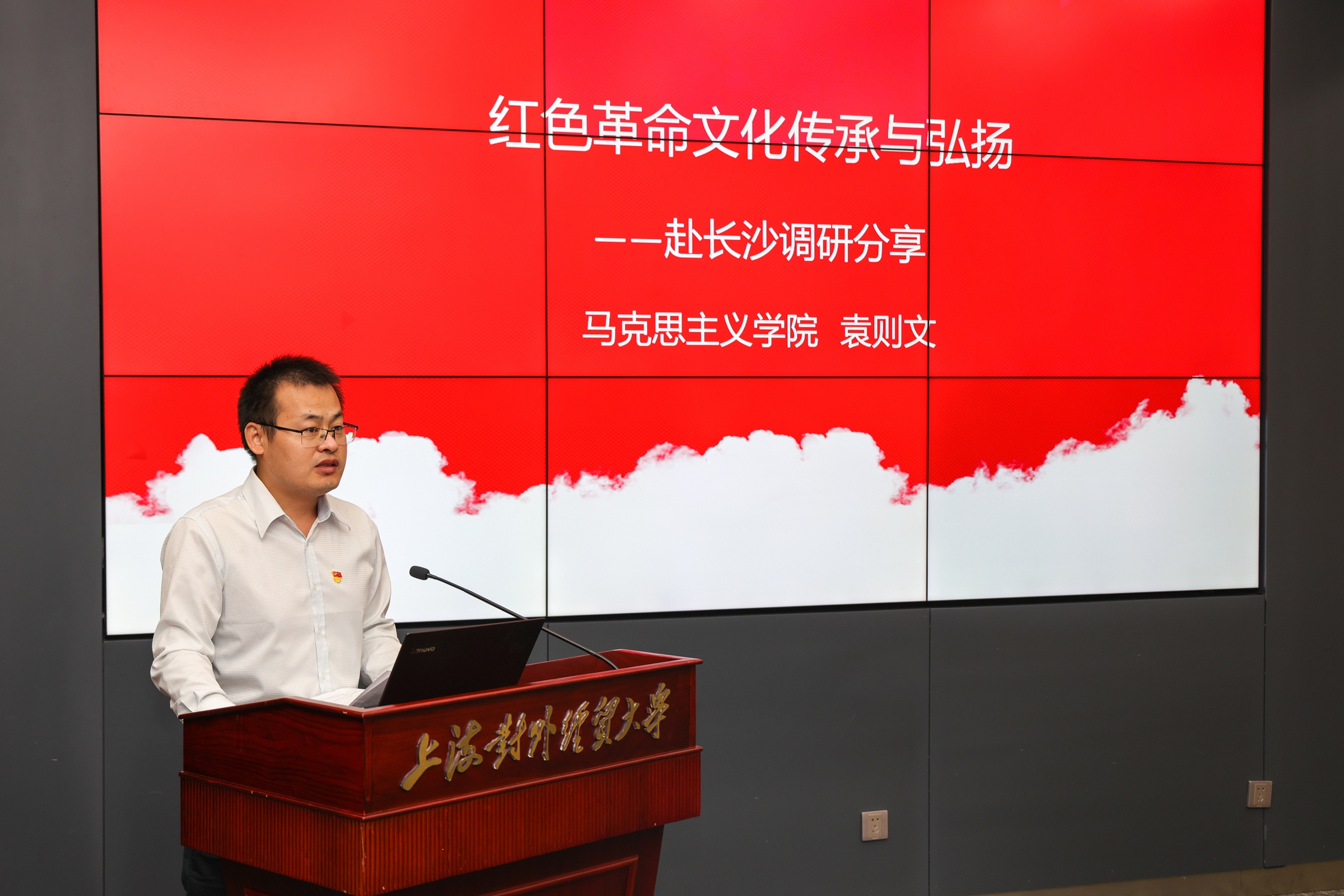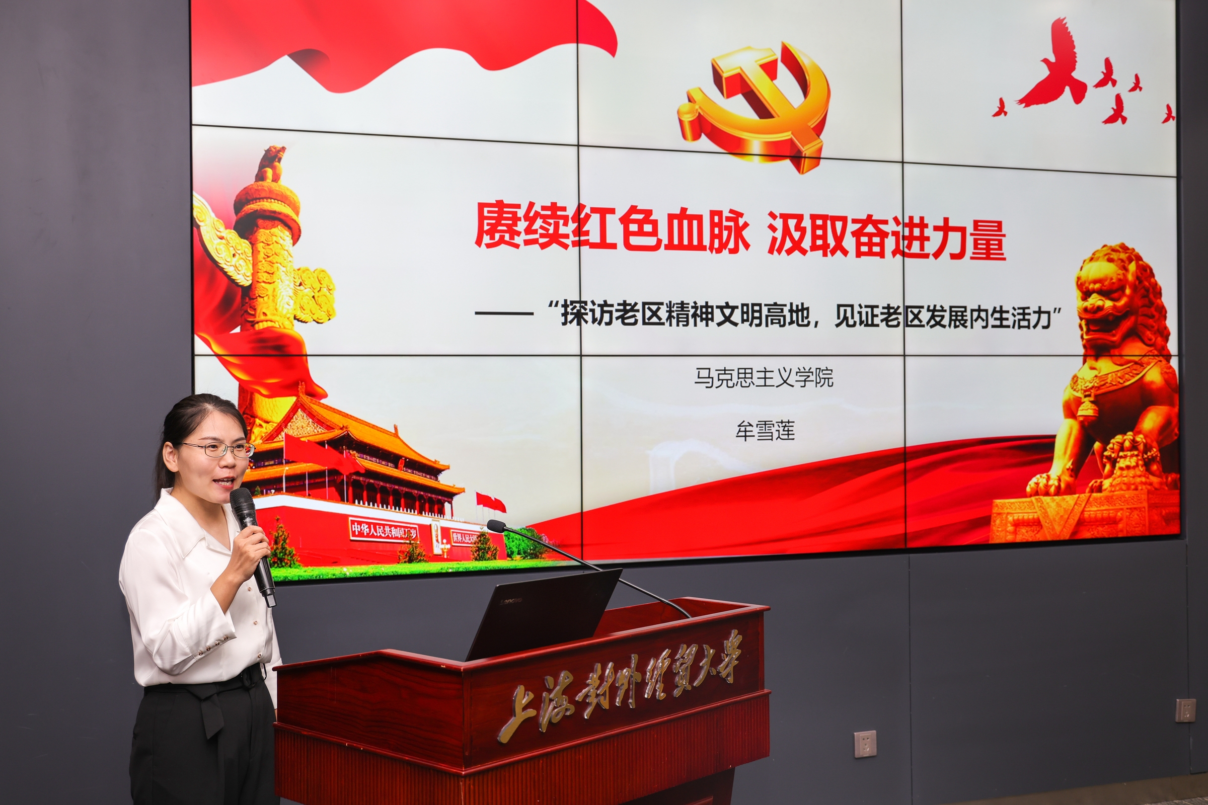 在特色展示环节,马克思主义学院院长秦淑娟汇报了“走老区 看发展”——中国共产党成立100周年暑期专项社会实践活动相关情况,教师代表袁则文、牟雪莲分别交流分享了带队调研走访长沙和井冈山等红色场馆过程中的收获与感悟。