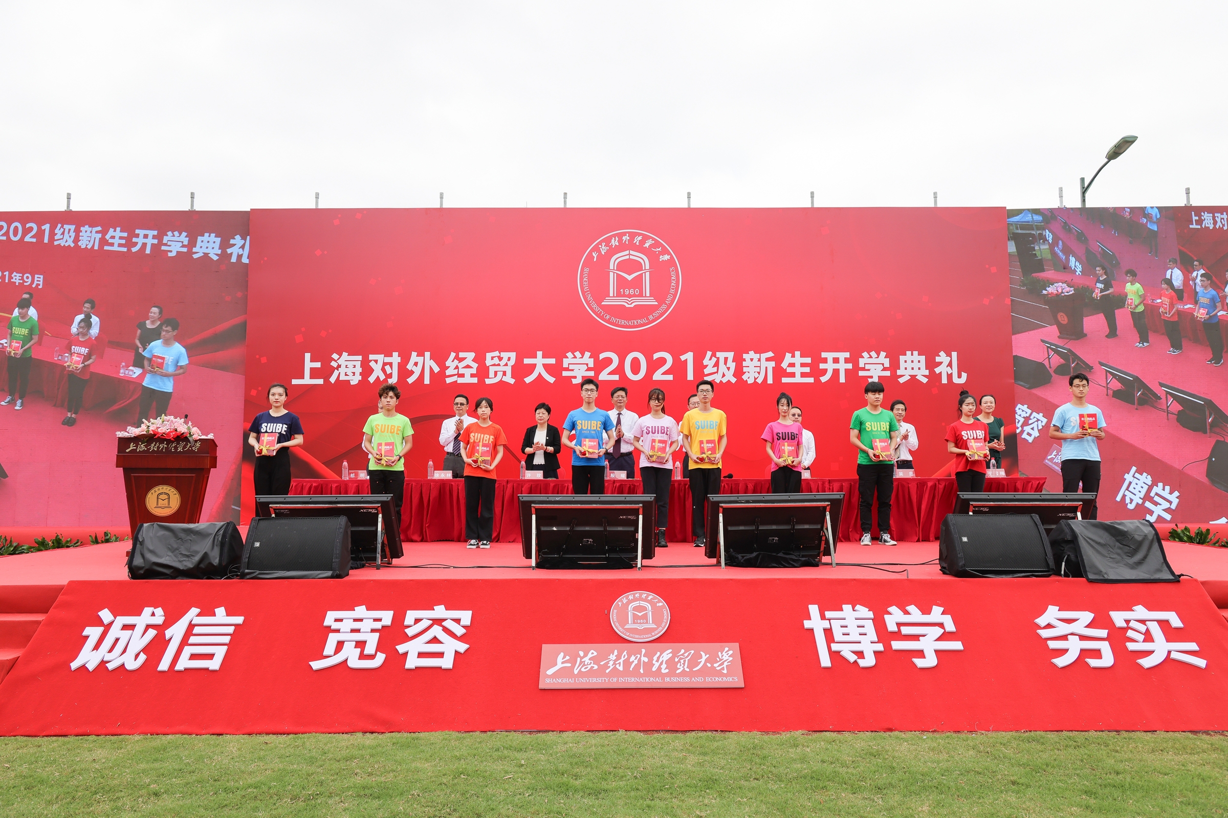 校徽是学校精神的象征,也承载着上经贸大人的使命担当。典礼上,校领导为新生代表赠送了校徽和党史学习教育经典书籍《红色的起点》,勉励同学们赓续红色血脉、传承贸大精神、注入奋进力量,在新的起点上,庄严启程,沿着正确的道路奋进前行、行稳致远。