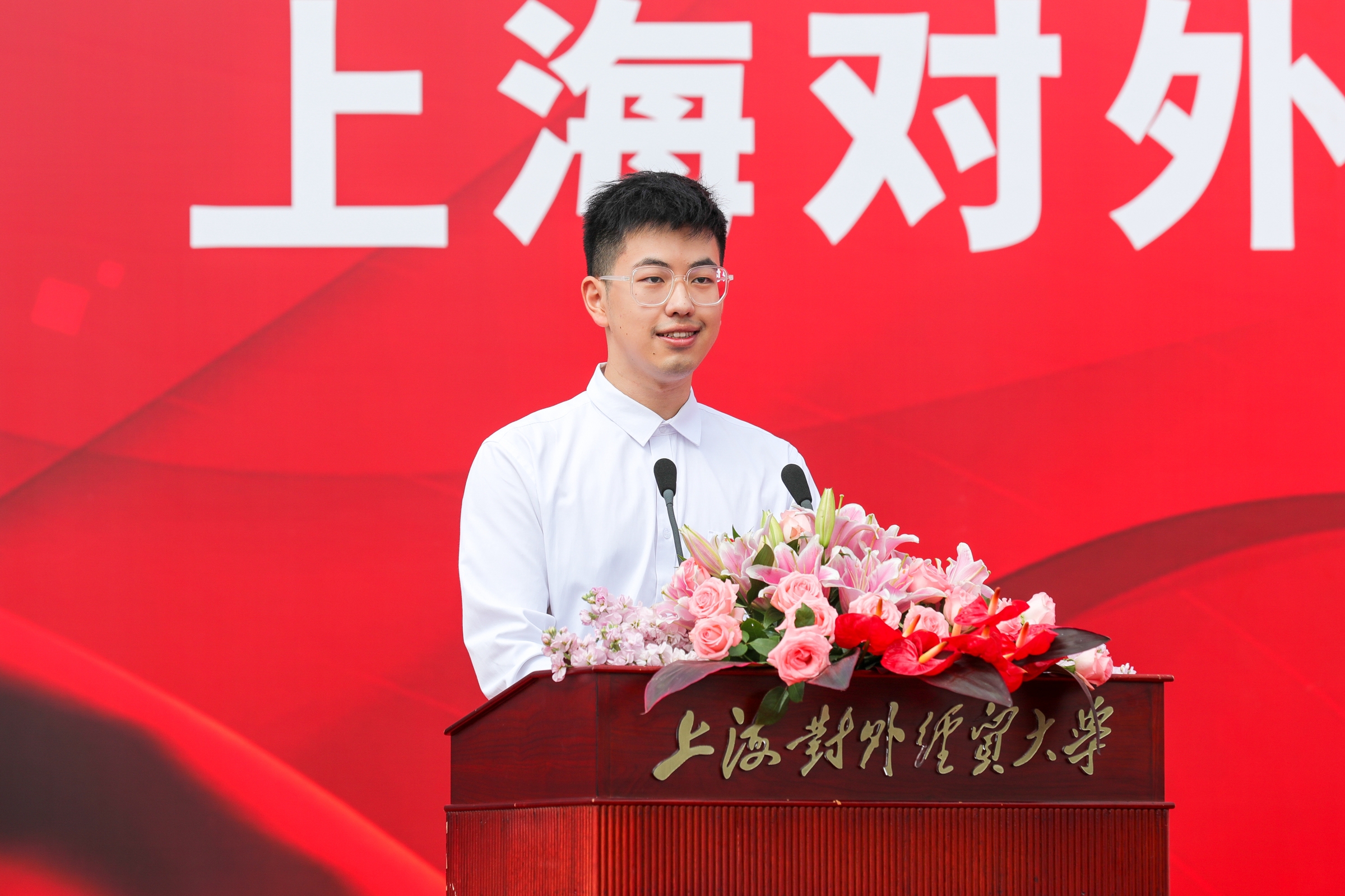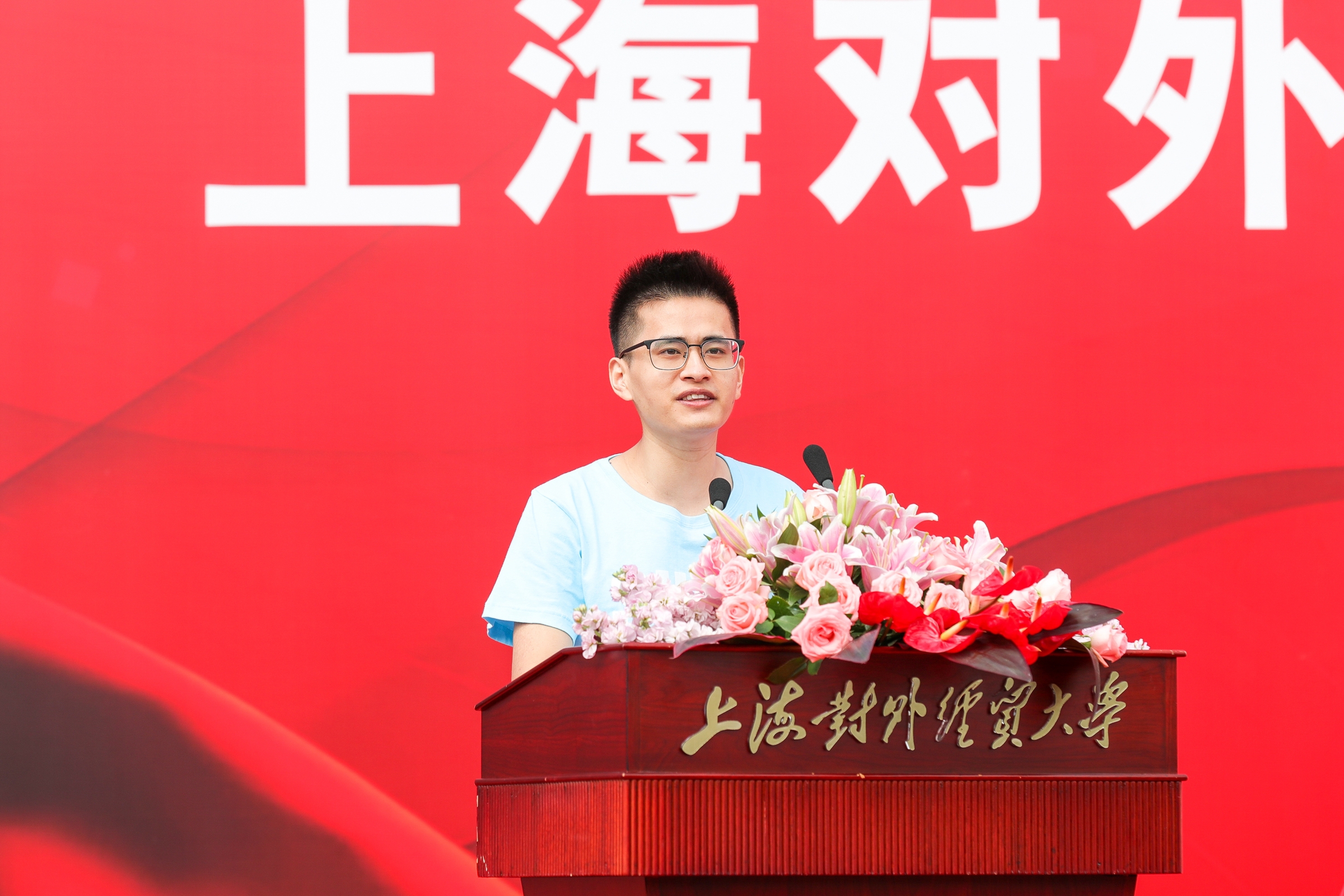 国际经贸学院陈涛同学代表研究生新生交流发言。他分享了自己对于追求理想的态度和实现理想的践行精神。他表示,上经贸大给同学们提供了一个良好的提升自我思想修养和知识水平的平台,衷心祝愿大家在美丽的思源湖畔结交挚友、收获真知、以梦为马、不负韶华。