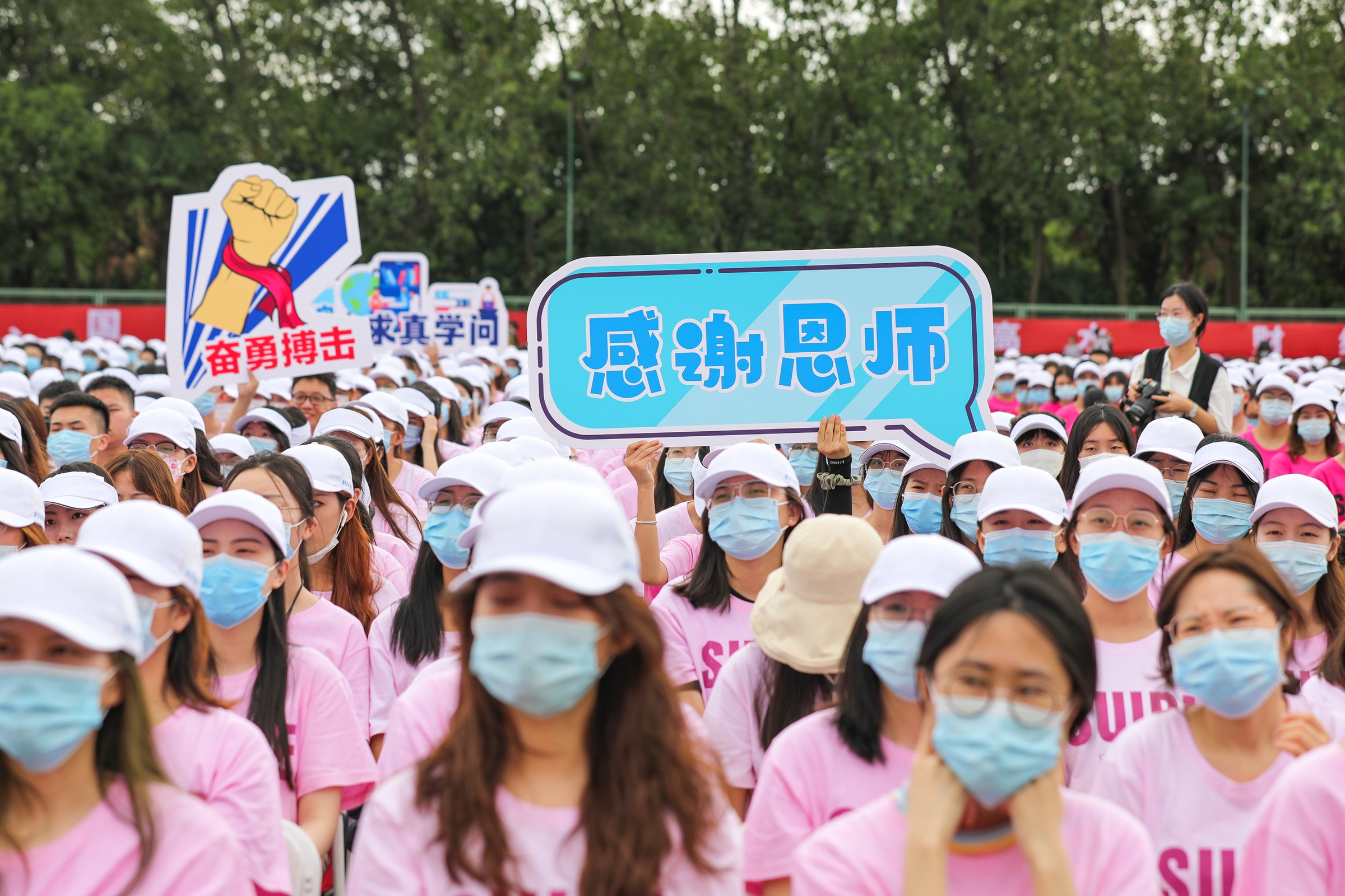典礼最后,在汪荣明校长的带领下,全体师生同唱《我和我的祖国》,激情高昂的歌声响彻体育场上空,将开学典礼推向最高潮。全体师生在歌声中弘壮志、铸梦想,共同祝愿我们伟大的祖国繁荣昌盛,学校事业发展蒸蒸日上!