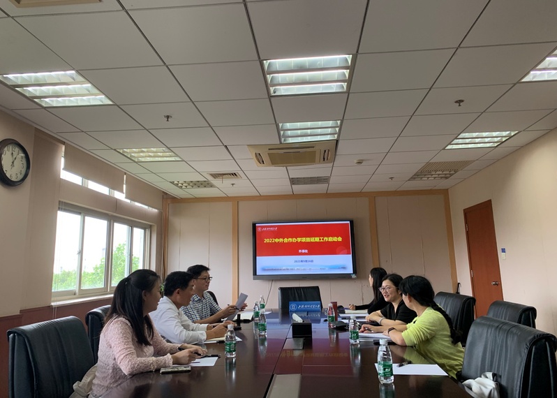 2021年9月16日下午,外事处在松江校区德政楼307召开了2022中外合作办学项目延期工作启动会。国际经贸学院书记金泉、金融管理学院院长张铁铸、外事处副处长王艳艳、国际商务外语学院副院长雷春林、国际商务外语学院外事秘书陆婷瑶以及外事处外事专员由欣等出席了本次会议。