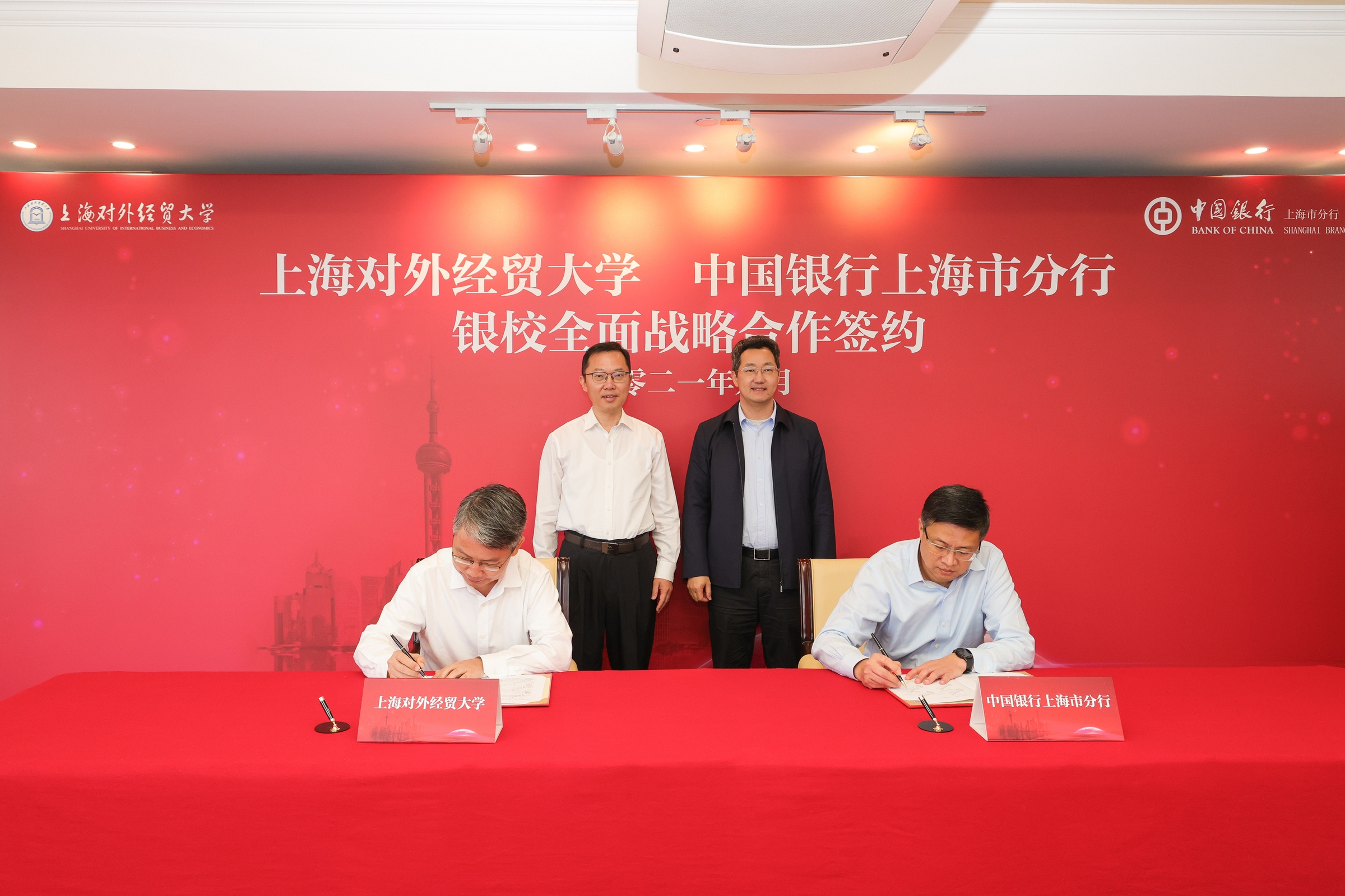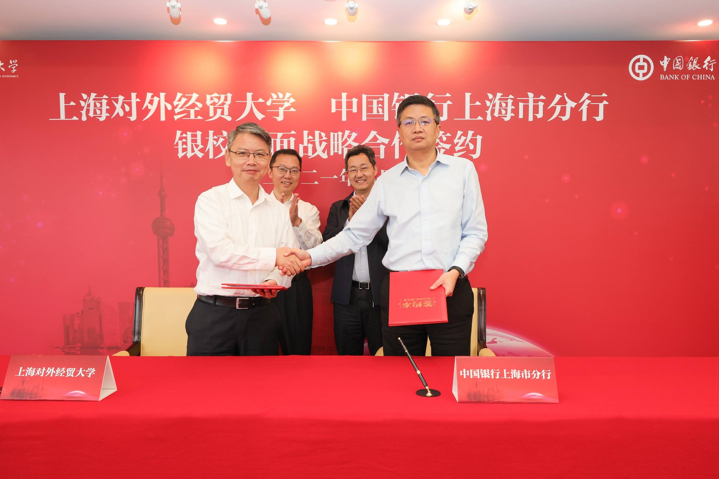 9月17日,必赢626net入口首页与中国银行上海市分行(以下简称“中行上海分行”)银校全面战略合作协议签约仪式在中行上海分行举行。校长汪荣明,中行上海分行党委书记、行长张守川出席活动并致辞,校党委副书记、副校长祁明与资深客户经理杨军代表合作双方签署协议。