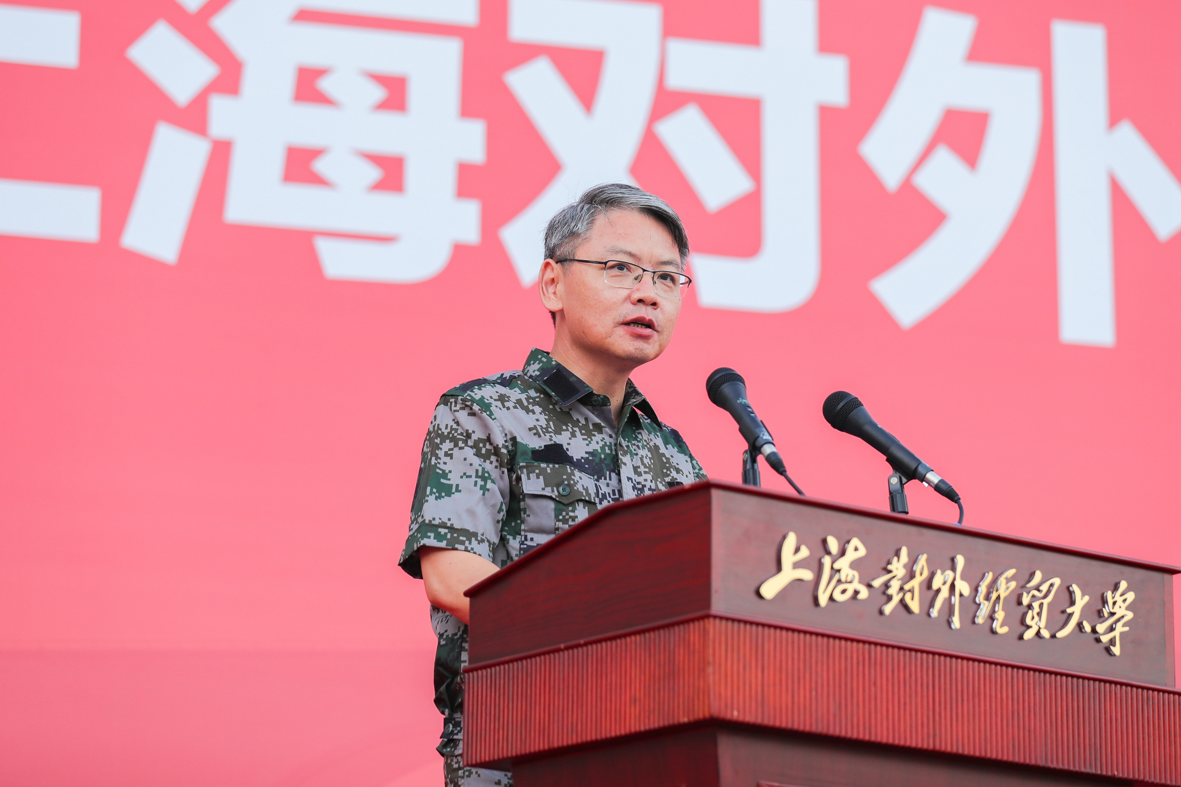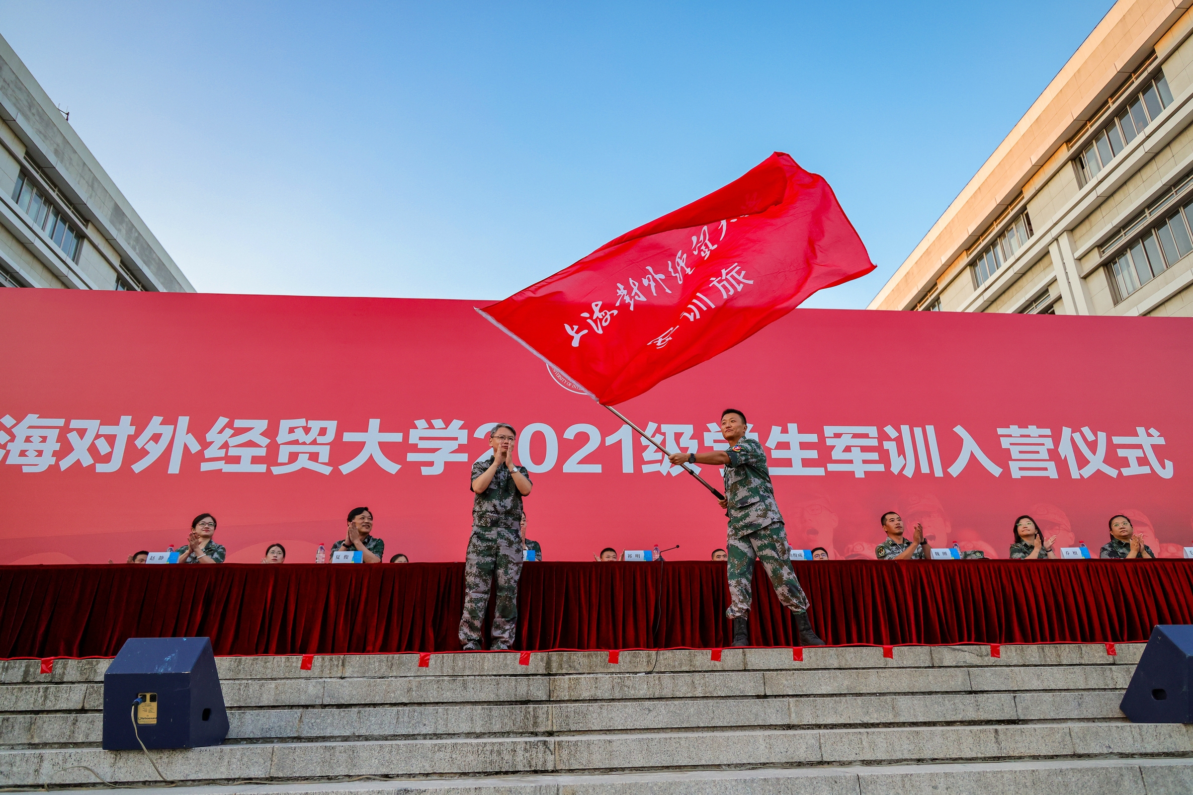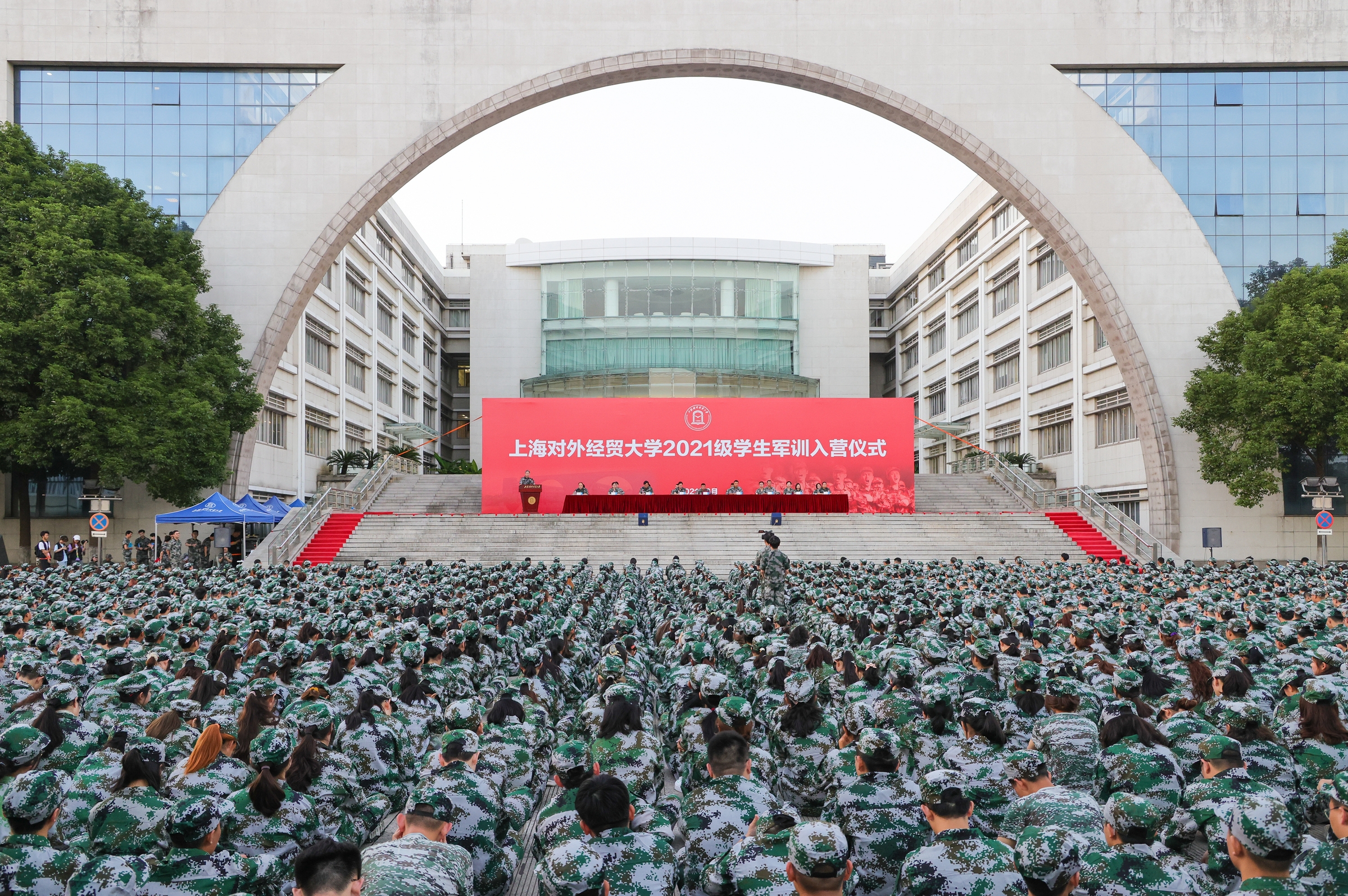 9月17日下午,2021级学生军训入营仪式在松江校区图文信息大楼南广场举行,2304名参训学生以激昂饱满的热情迎接本次军训。校党委副书记、副校长、军训工作总指挥祁明,中国人民解放军73181部队副政治委员、军训旅旅长鲍俊成,校党委武装部部长、军训旅政委许继亮,中国人民解放军73181部队71分队分队长、军训旅参谋长魏刚,校党委保卫部部长、军训旅副旅长、安保部部长夏俊及其他旅部领导,全体教官、全体参训师生出席入营仪式。校党委学工部副部长、军训旅副政委陈颖辉主持入营仪式。