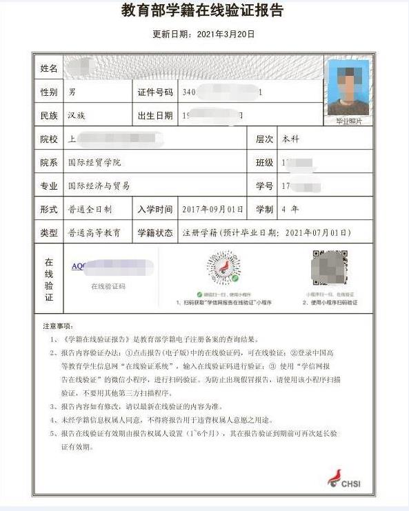 2. 《教育部学籍在线验证报告》(应届生提供,样张如附件1);