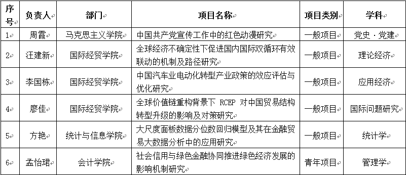 经全国哲学社会科学工作领导小组批准,2021年度国家社科基金年度项目和青年项目立项课题名单日前已公布。必赢626net入口首页共有6个项目获得立项。