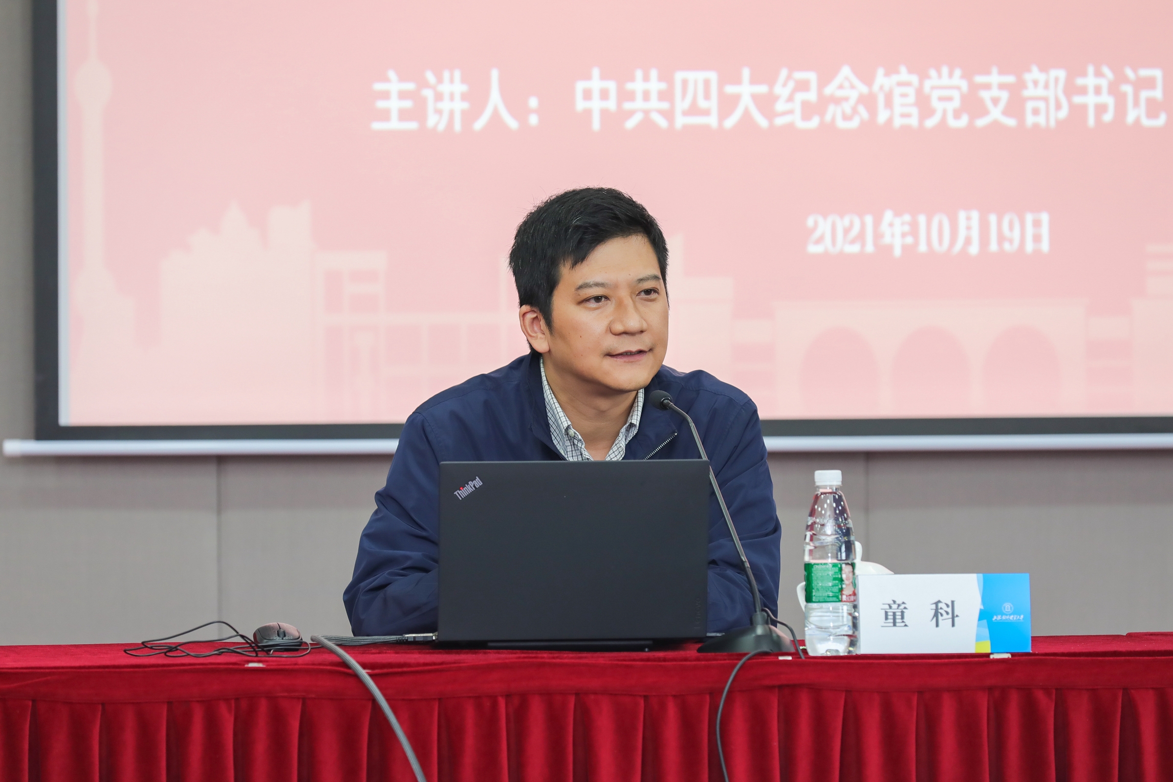 为深化党史学习教育,充分用好上海红色资源,从百年党史中汲取精神动力,10月19日下午,学校在信息楼526会议室举行党委理论学习中心组学习(扩大)会,邀请中共四大纪念馆党支部书记、馆长童科来校作“回首历史丰碑 探寻力量之源——中国共产党的创建与中共四大的历史贡献”专题辅导报告。学校党委中心组成员、全体中层干部、支部书记、专(兼)职组织员、统战系统成员、第六期青年骨干教师培训班学员参加学习会。会议由校党委副书记、副校长祁明主持。