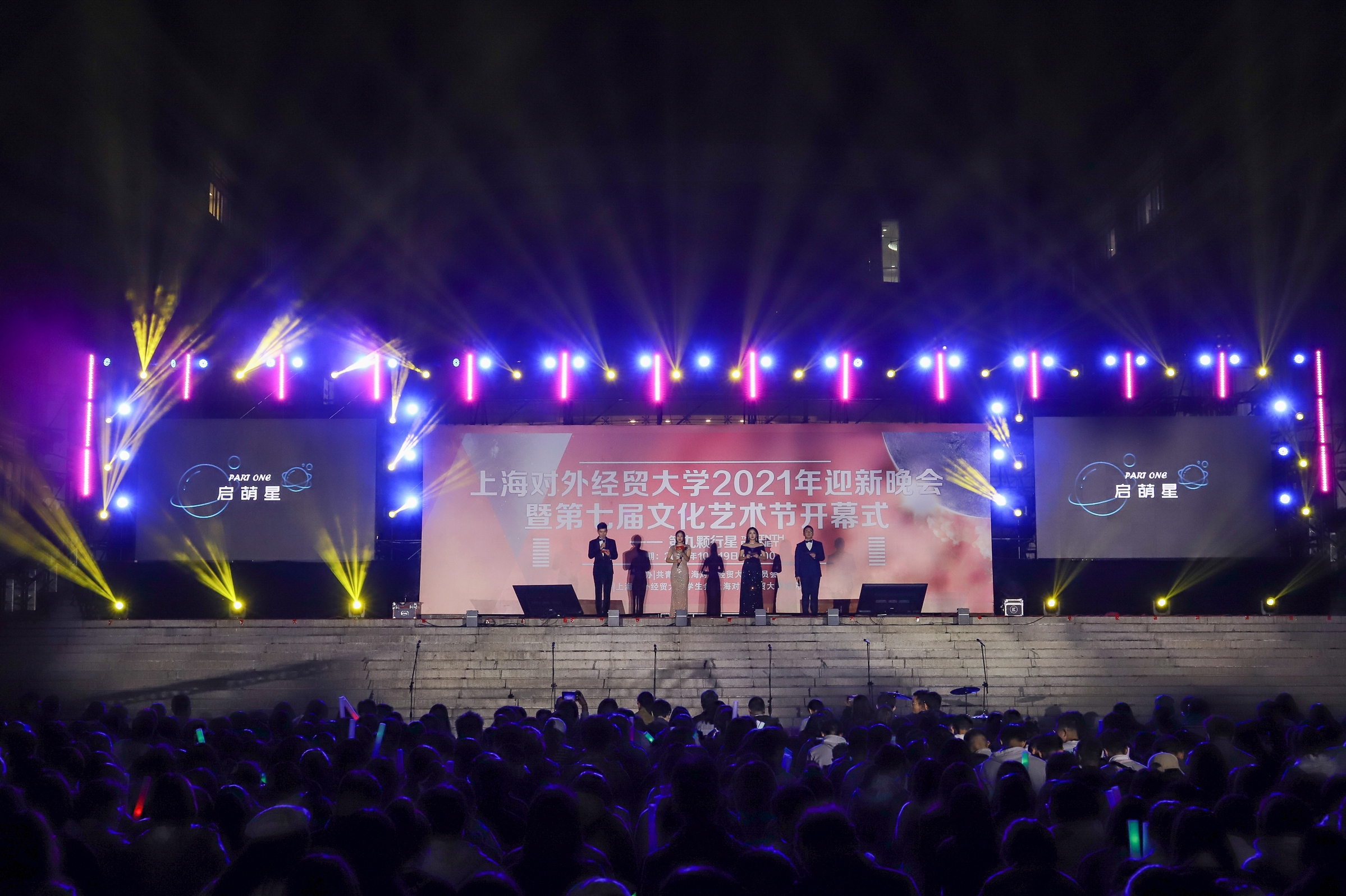 10月19日晚,必赢626net入口首页2021年迎新晚会暨第七届文化艺术节开幕式在松江校区南广场隆重举行,本次活动由校团委主办、校学生会和校研究生会承办,校长汪荣明,校党委副书记、副校长祁明,副校长于雪梅,各学院党委副书记,党委宣传部、学生处相关领导和老师与1200多位2021级新生共同在现场观看了晚会,同时有2000多人次通过直播的方式线上进行了观看。