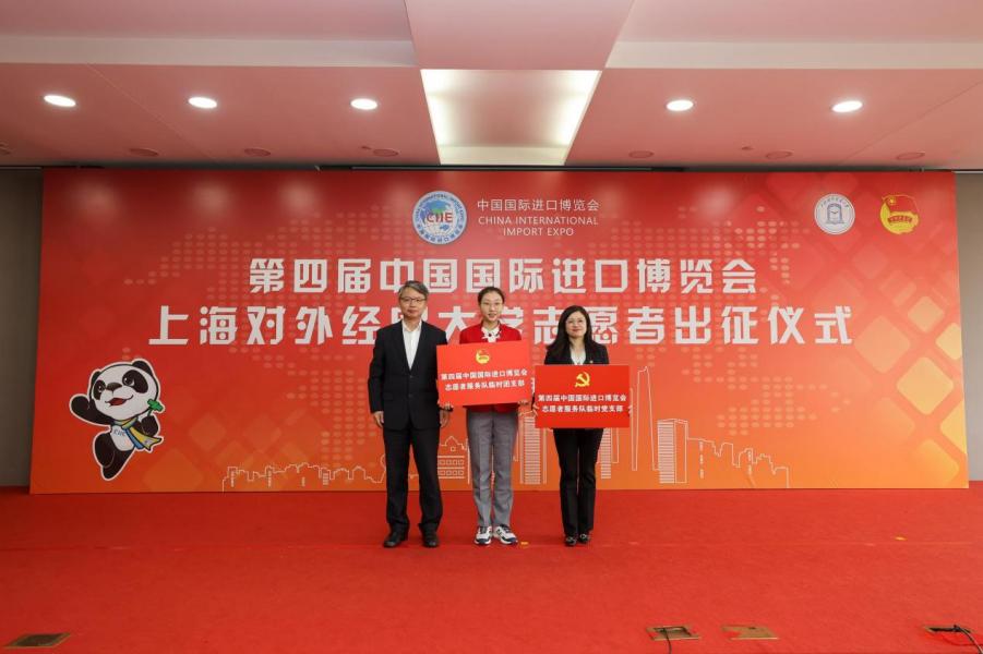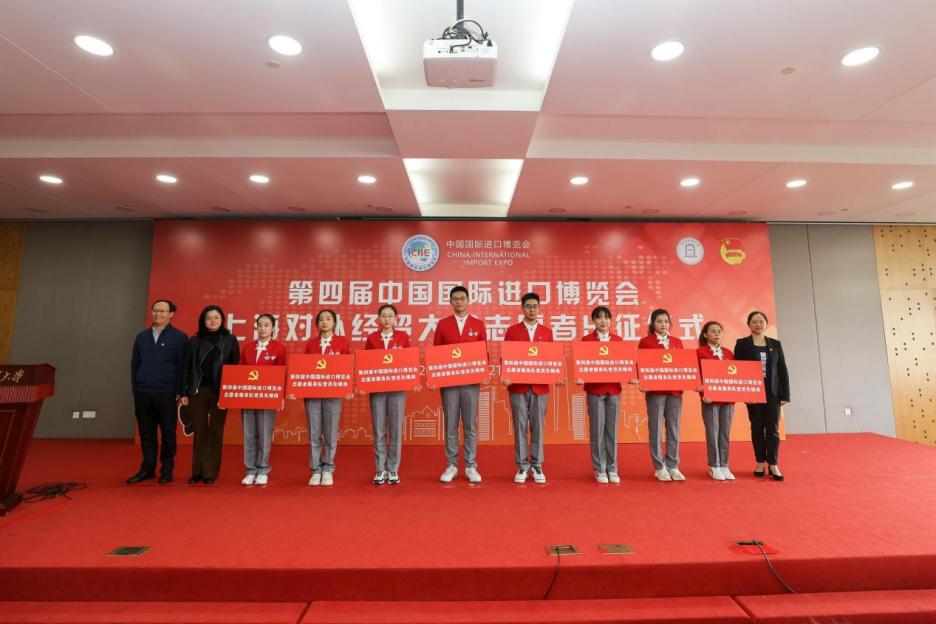 出征仪式上,祁明为第四届中国国际进口博览会志愿者临时党支部、临时团支部授牌,为第四届中国国际进口博览会必赢626net入口首页志愿者服务队授旗。与会相关部门负责人为第四届中国国际进口博览会志愿者党员先锋岗授牌。