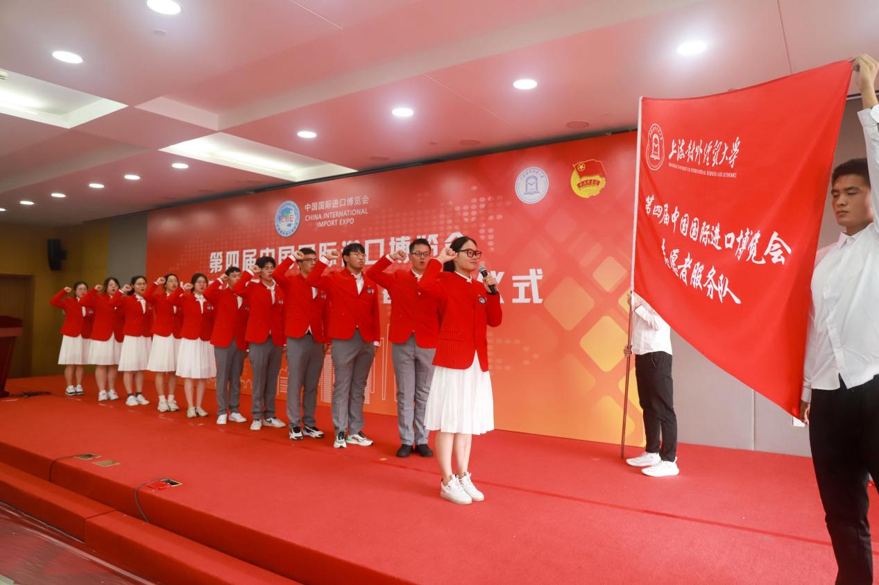 出征仪式最后,全体志愿者宣誓:“奉献有爱,互助进步,追求卓越,全力以赴,为祖国增光,为城市添彩,向前进,博青春,为进博,一起来!”上经贸大“小叶子”将继续以服务进博、贡献青春、报效祖国的赤子之心,践行青年一代“请党放心强国有我”的誓言。