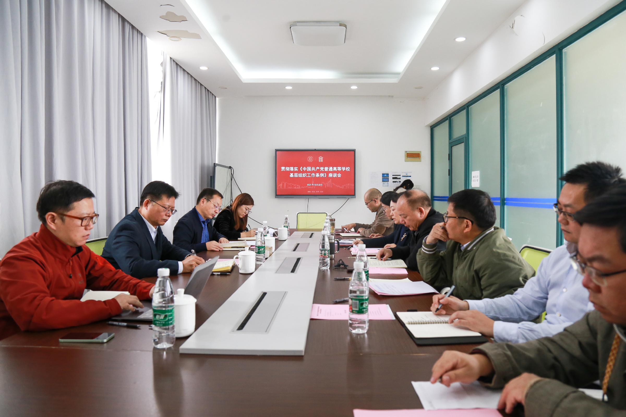 10月22日下午,校党委书记殷耀带队赴国际经贸学院开展专题调研,就贯彻落实《中国共产党普通高等学校基层组织工作条例》(以下简称《条例》)进行交流研讨。校党委副书记吴毅,学院全体领导班子成员和教师代表出席会议。党委组织部副部长刘素贞、学校办副主任欧阳君陪同调研。
