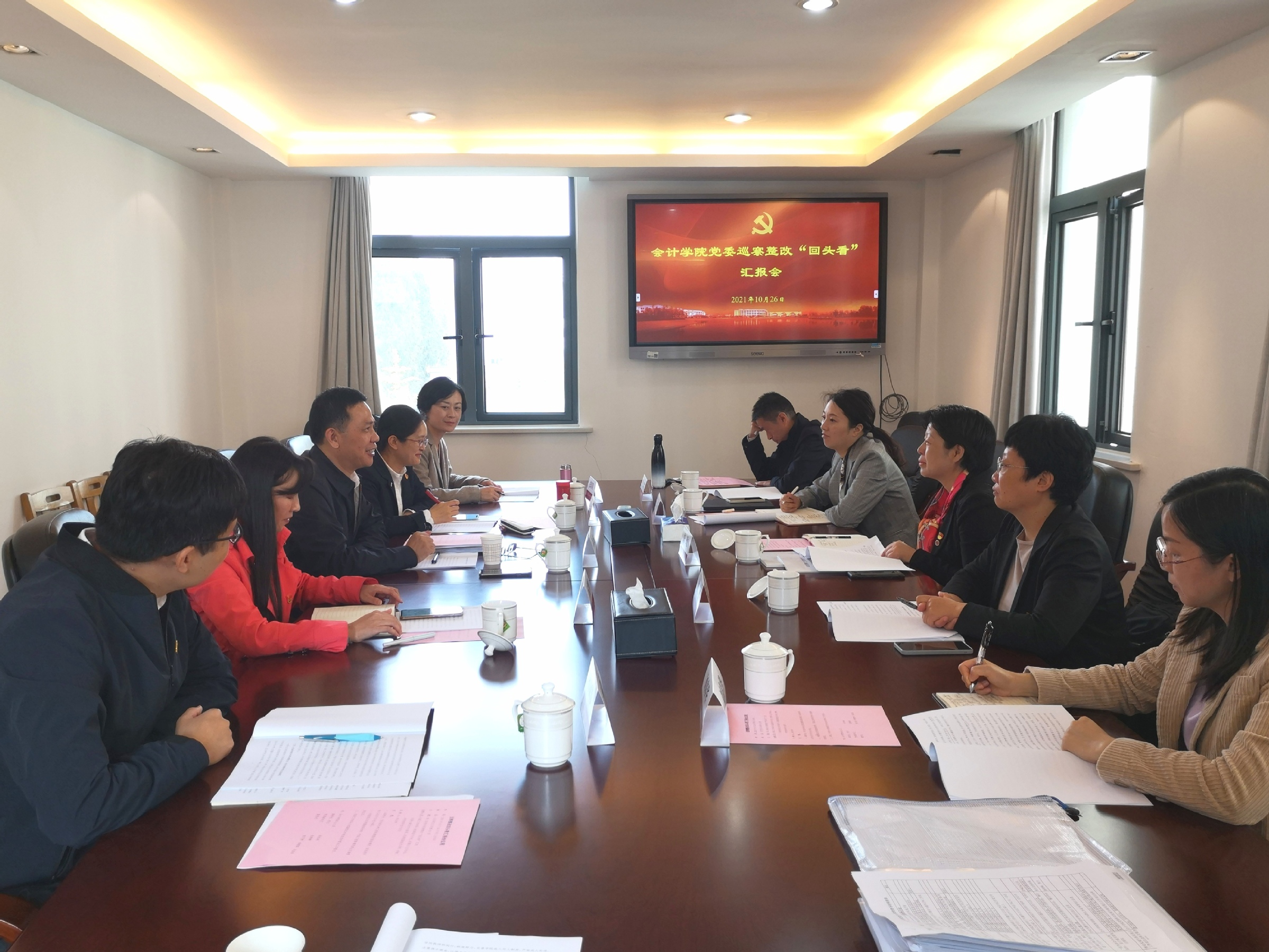 根据学校党委统一部署,近期,学校党委巡察工作领导小组副组长、党委副书记、纪委书记、市监委派驻监察专员许玫率检查组对第二轮校内巡察单位法学院党委、会计学院党委、后勤综合管理处党支部开展巡察整改“回头看”,对第三轮校内巡察单位统计与信息学院党委、继续教育学院直属党支部、保卫部(处)党支部开展巡察整改阶段性情况检查。各巡察组组长、副组长和巡察办主任、副主任等一同参加检查。检查组听取被巡察单位整改情况汇报,查阅相关材料,实地查看整改项目,深入交流巡察整改成果运用情况。