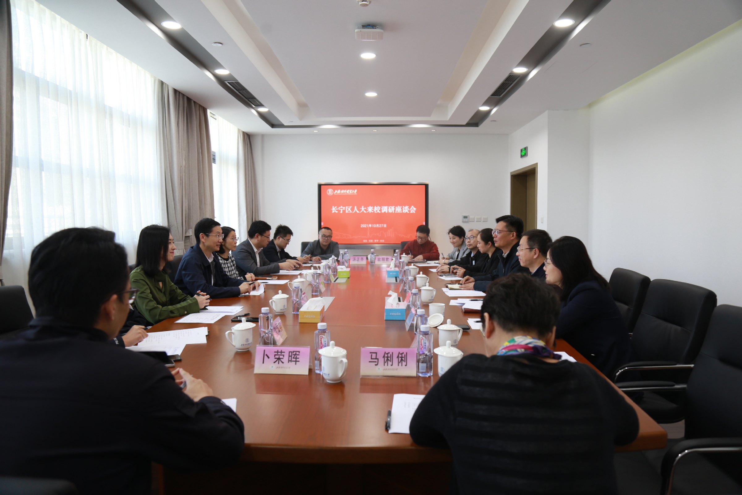 10月27日下午,长宁区人大常委会党组书记戴骅一行到古北校区调研必赢626net入口首页长宁选区人大换届选举工作。校党委书记殷耀、党委副书记吴毅和学校人大换届选举工作小组成员参与座谈并陪同调研。