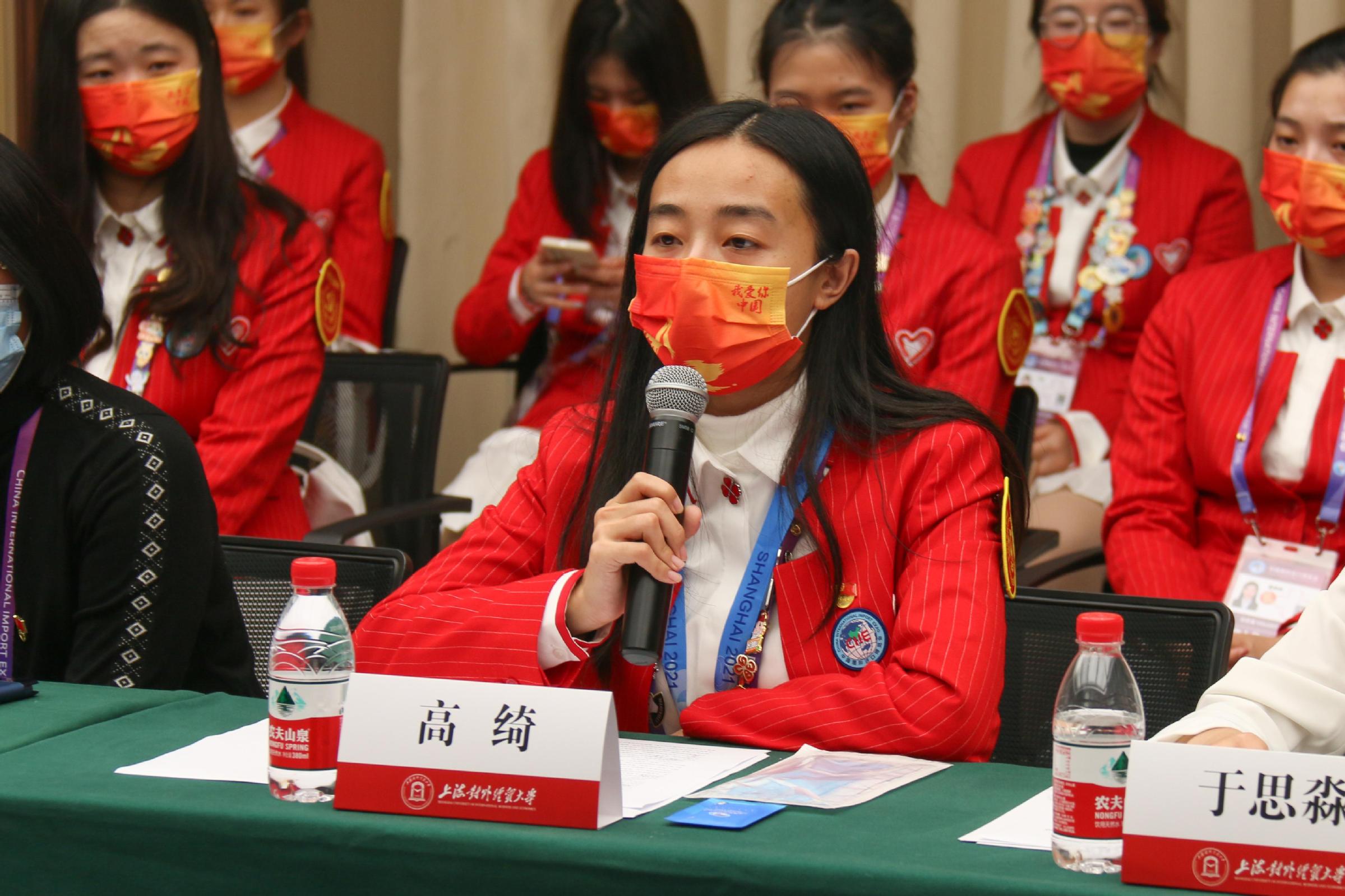 学校以及中国银行上海市分行的进博会志愿者代表分别结合上岗经历、工作事迹,分享实践感悟,充分展现出了志愿者们“青春无畏向前进”的风采。大家纷纷表示,要在奋发有为中践行初心使命,为圆满完成此次志愿服务工作贡献出青春力量。