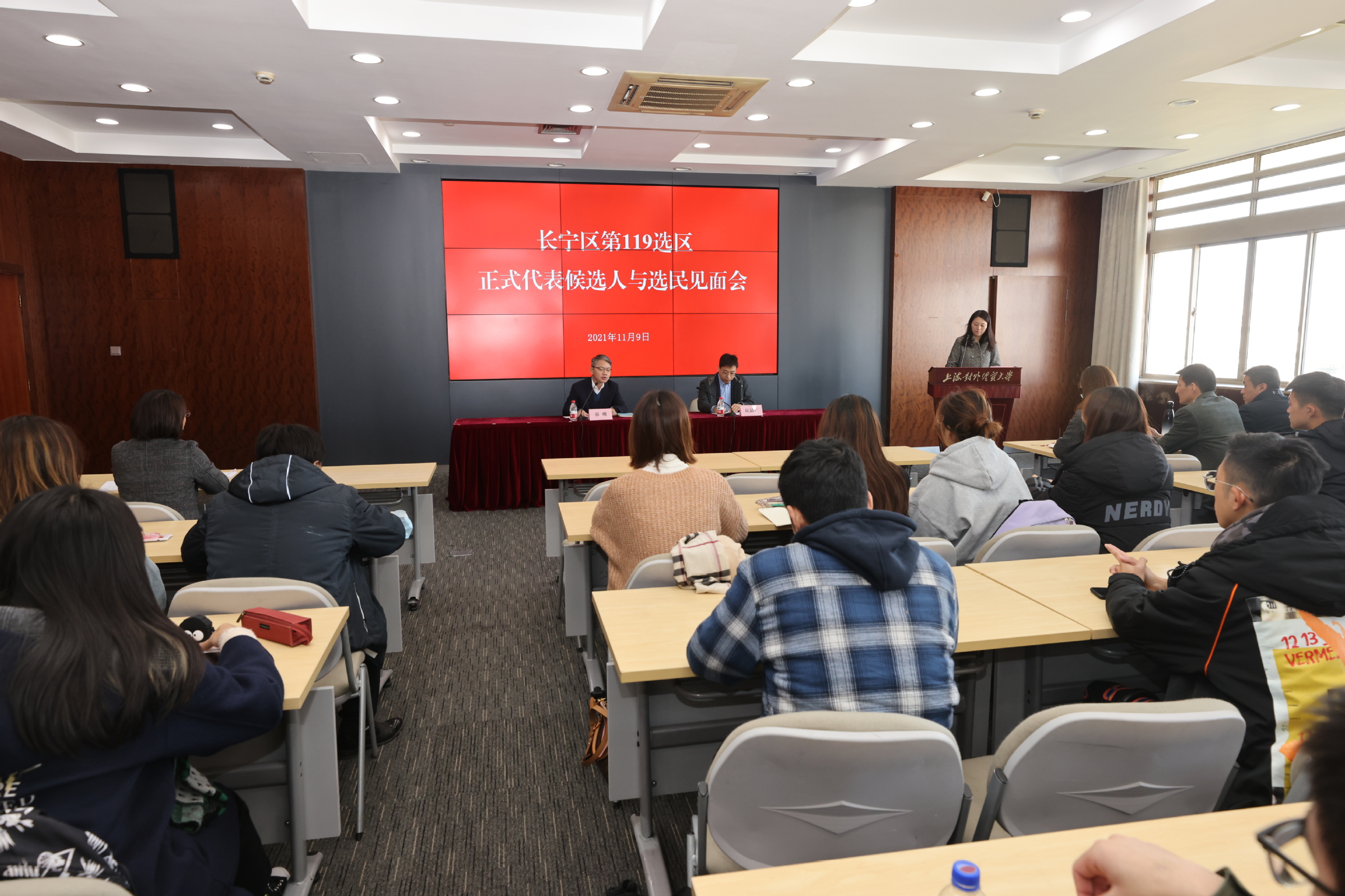 根据长宁区和松江区人大代表换届选举工作统一安排,为增进选民对正式代表候选人的了解,保障民主选举权利,11月9日下午,学校分别在图文信息大楼503会议室和图书馆思源报告厅举行长宁区第119选区和松江区第44选区正式代表候选人与选民见面活动,两个选区正式代表候选人与选民小组长、选民代表见面交流。见面活动由党委组织部副部长黄静主持。