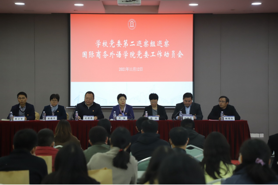 第一巡察组组长张嵘、第二巡察组组长武增勇、第三巡察组组长范登峰,分别在国际经贸学院党委、国际商务外语学院党委、体育部直属党支部召开的巡察工作动员会上作动员讲话,对开展校内巡察的工作重点、总体安排、工作方式和有关要求作具体说明。