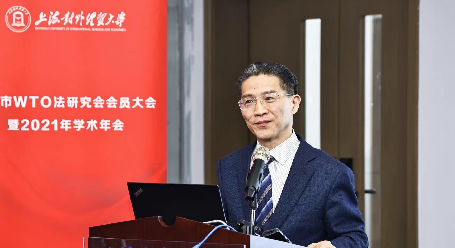 周汉民在本次大会上再次受任上海市WTO法研究会名誉会长并作主题报告。