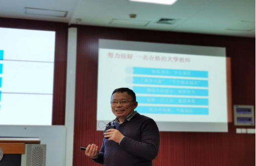 胡良剑作了题为“努力做好一名合格的大学教师”的主题报告。他介绍了东华大学理学院的基本情况,结合自己多年的教学经历和心得体会,向与会教师作了分享。他认为,教师要放低身段、学会感恩;发挥一技之长赢得尊重;努力补短板才不会被淘汰。